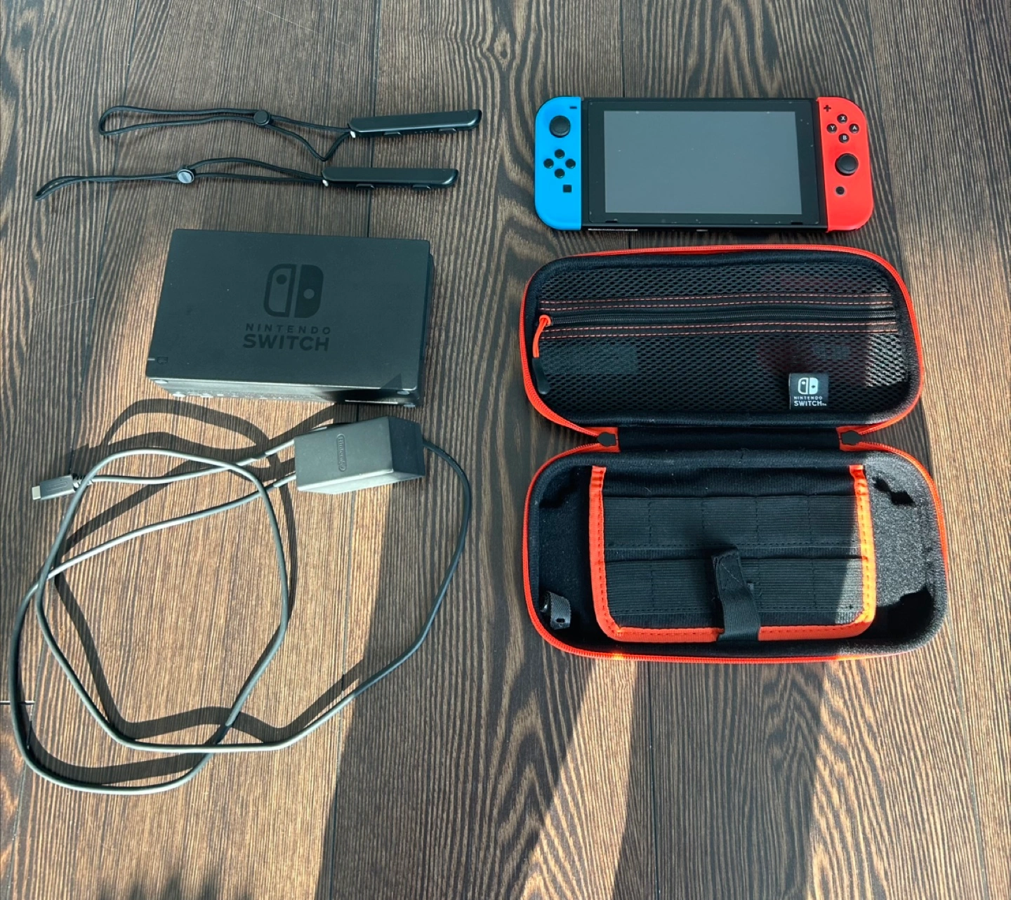 Selling a Nintendo Switch in good condition. Includes the console with red and blue Joy-Cons, the dock, charger, and a carrying case to keep everything safe and organized!