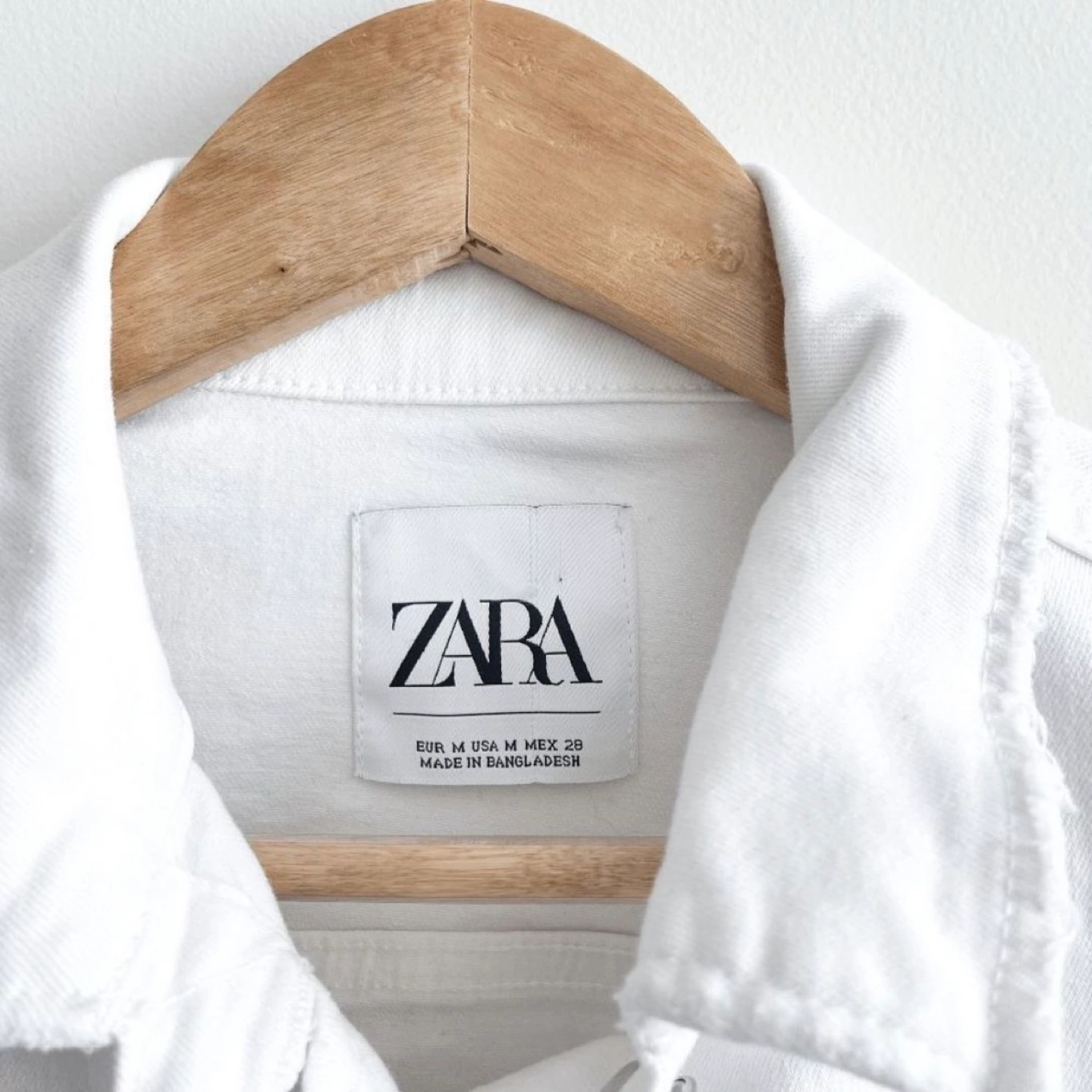 Zara white denim jacket in size M. The jacket is made of 98% cotton and 2% elastane. It's in great condition and ready for a new home!