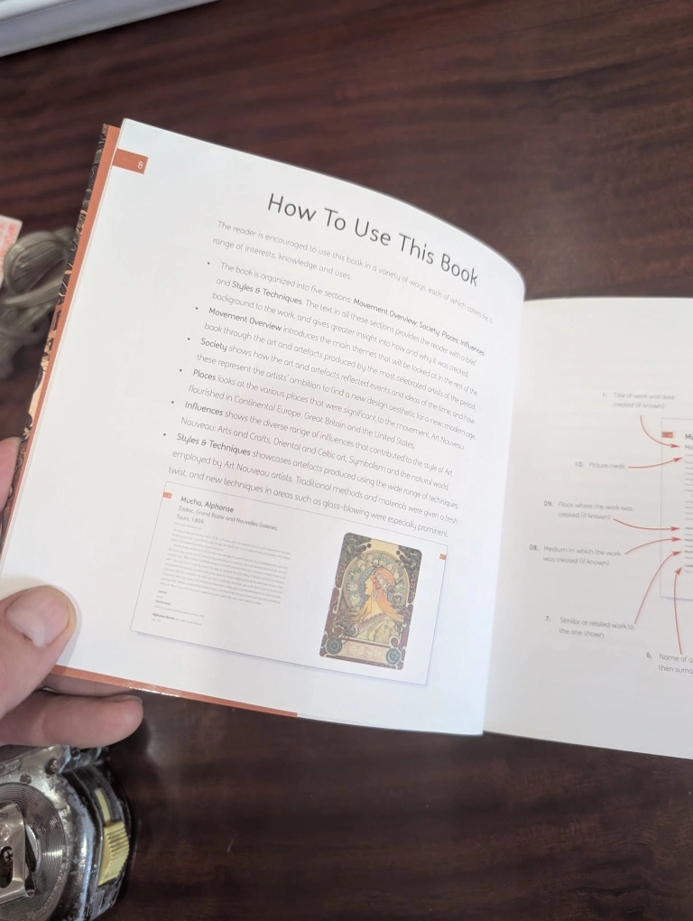 Selling a book about Art Nouveau. It has lots of pictures and information about the Art Nouveau movement, artists, and techniques