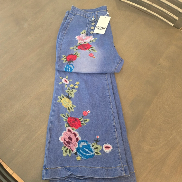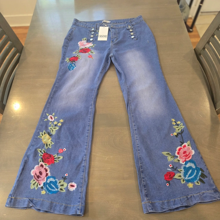 These gorgeous Ursime jeans are super hot! They are high wasted and flare style with beautiful floral embroidery. They're a size XL and in new condition with tags still attached!