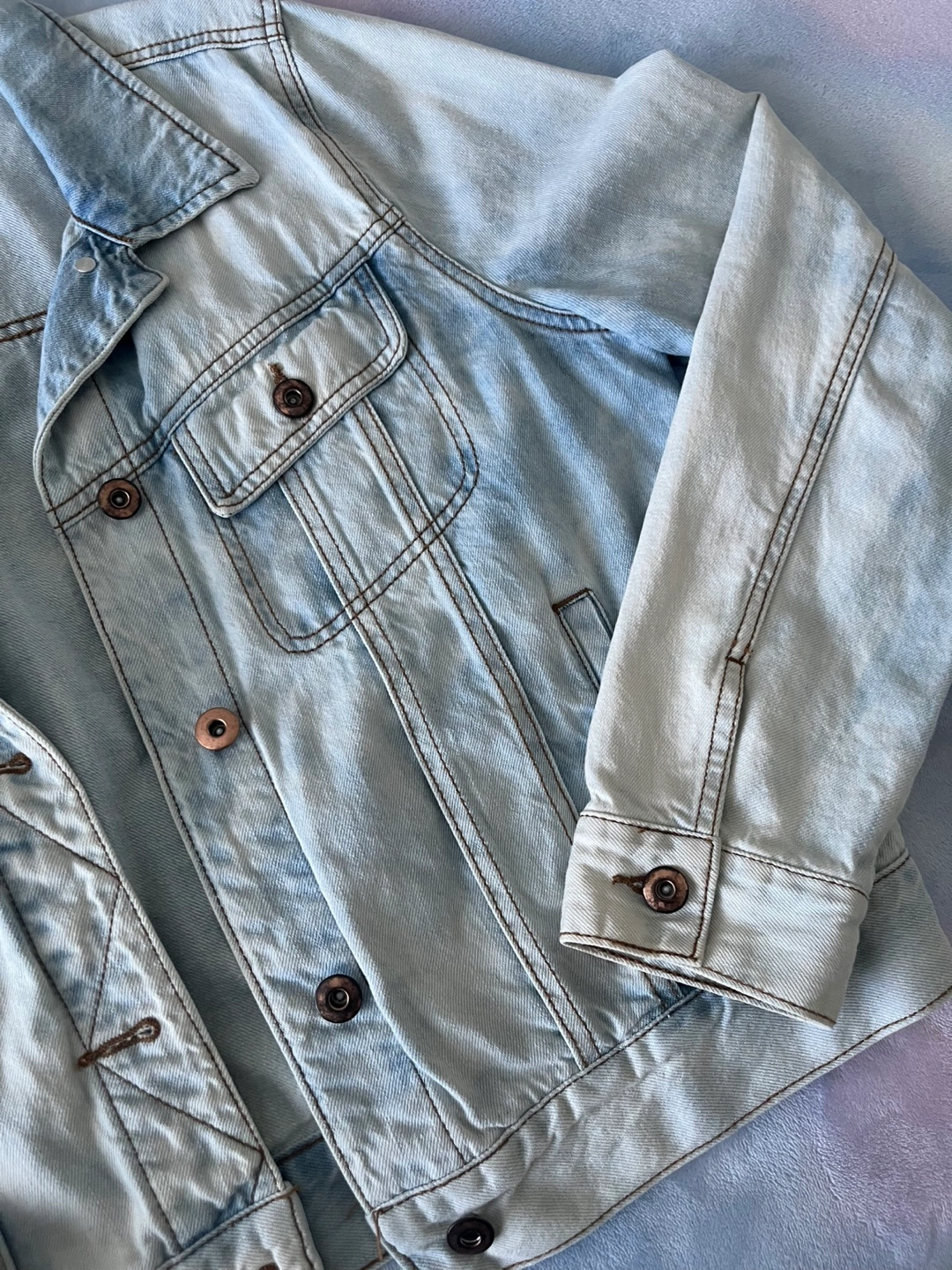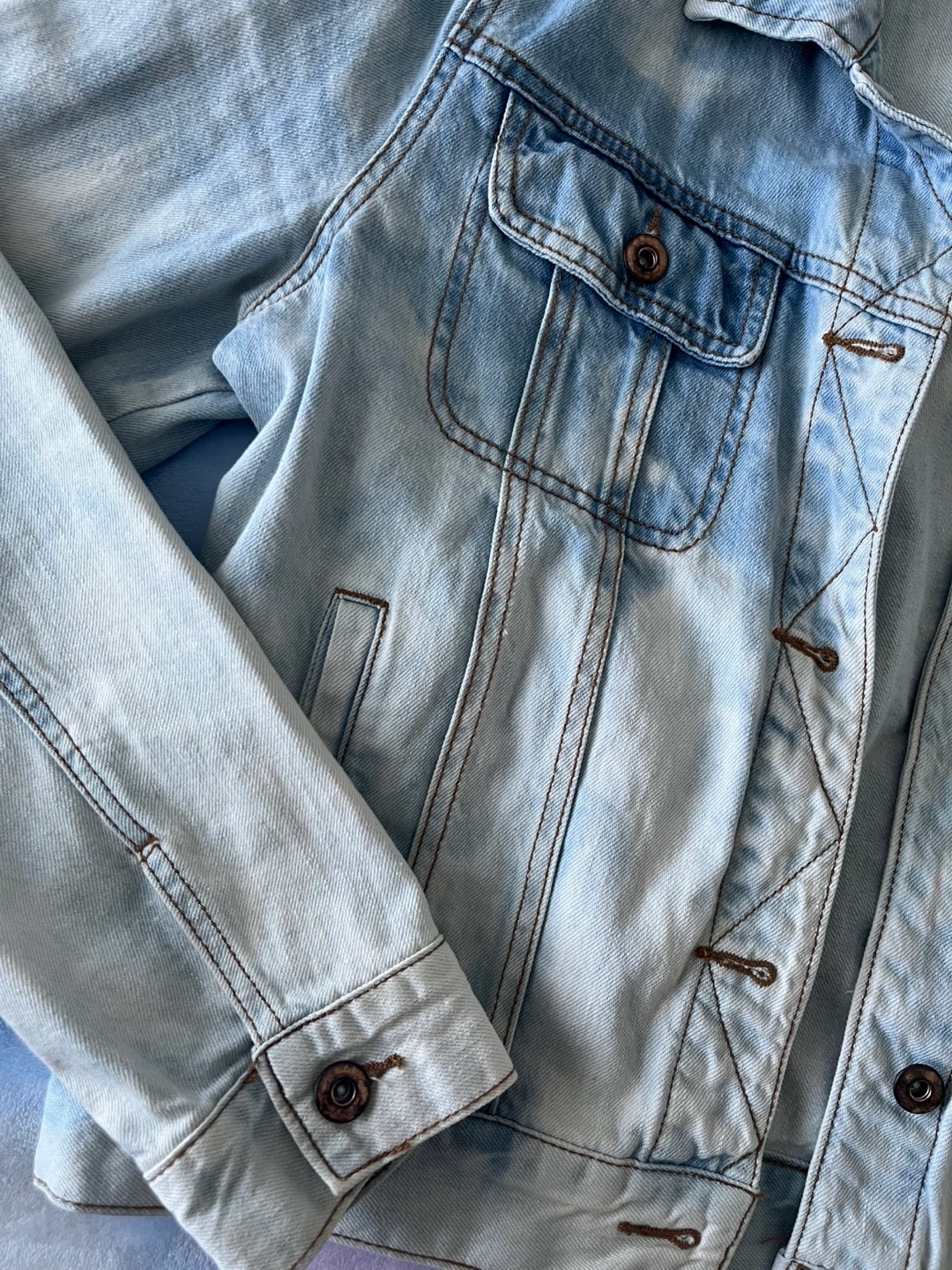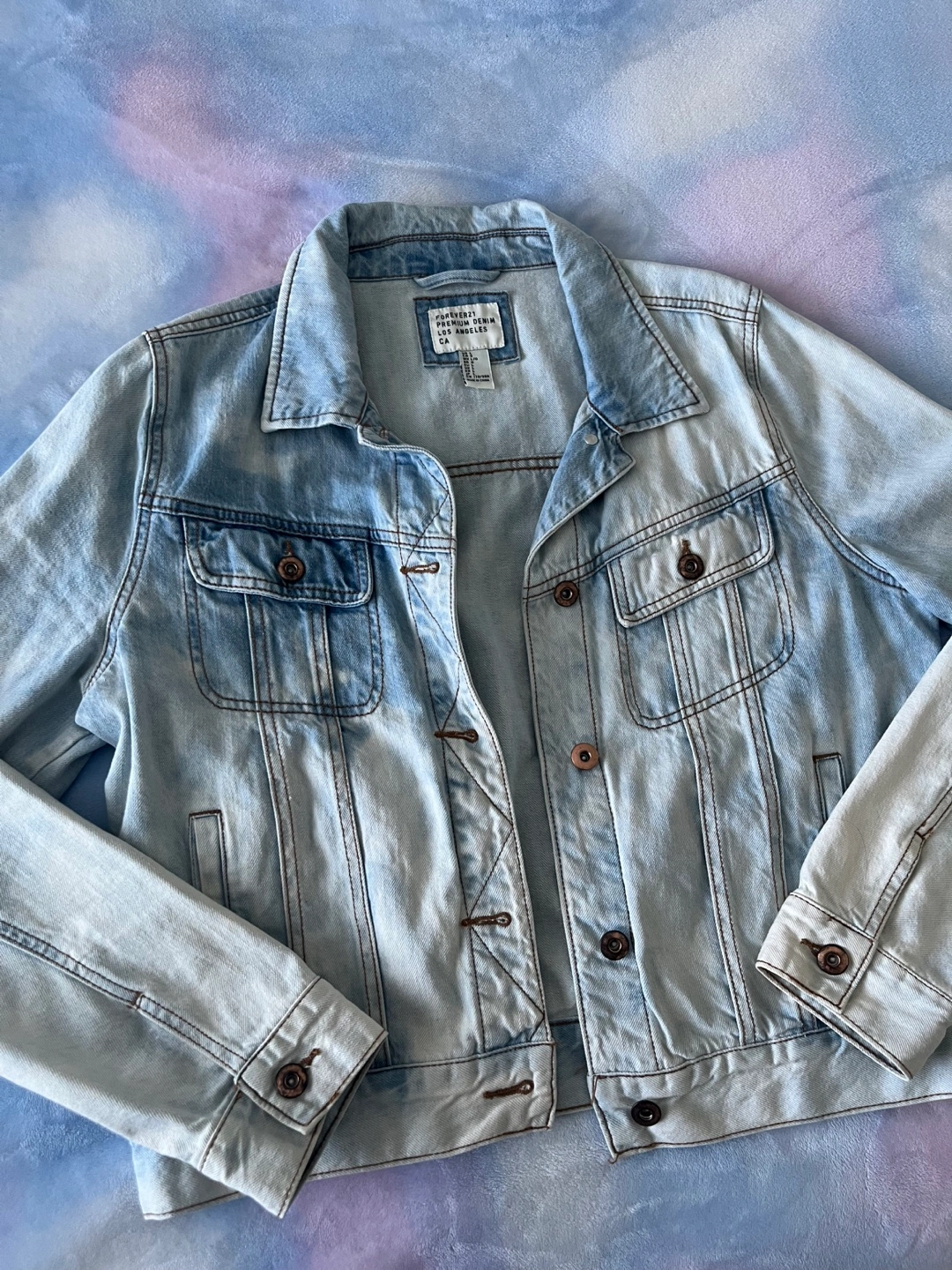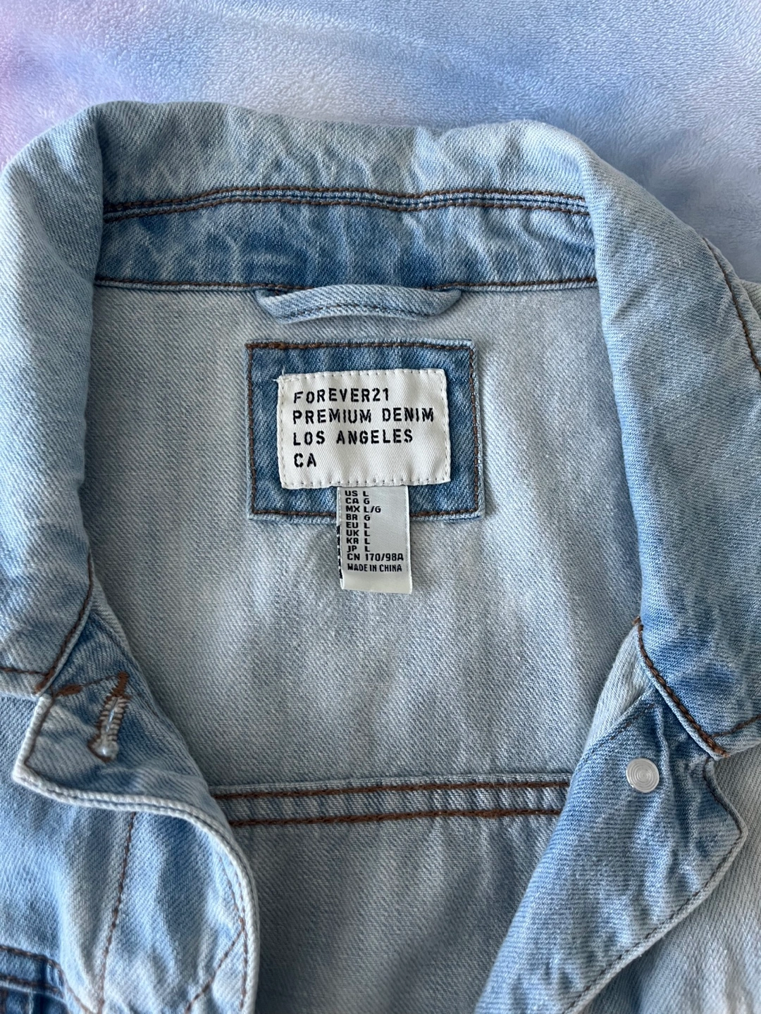 Selling a cute Forever 21 light wash denim jacket! It's a size large, fits small though. Perfect condition.