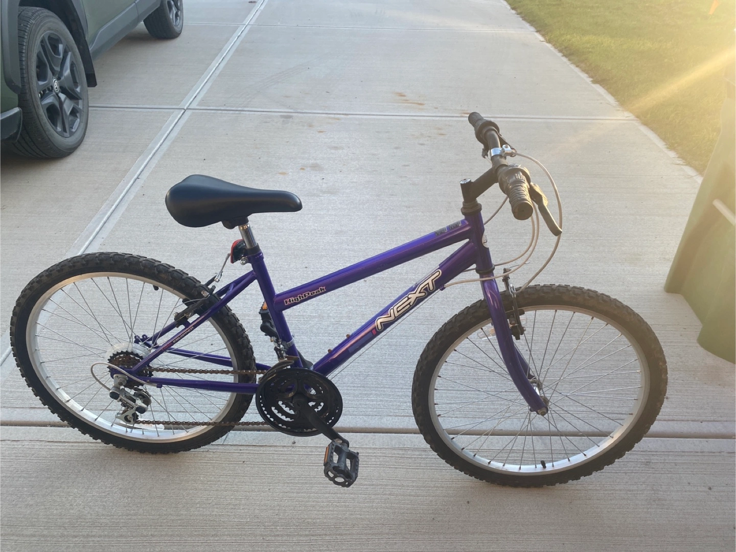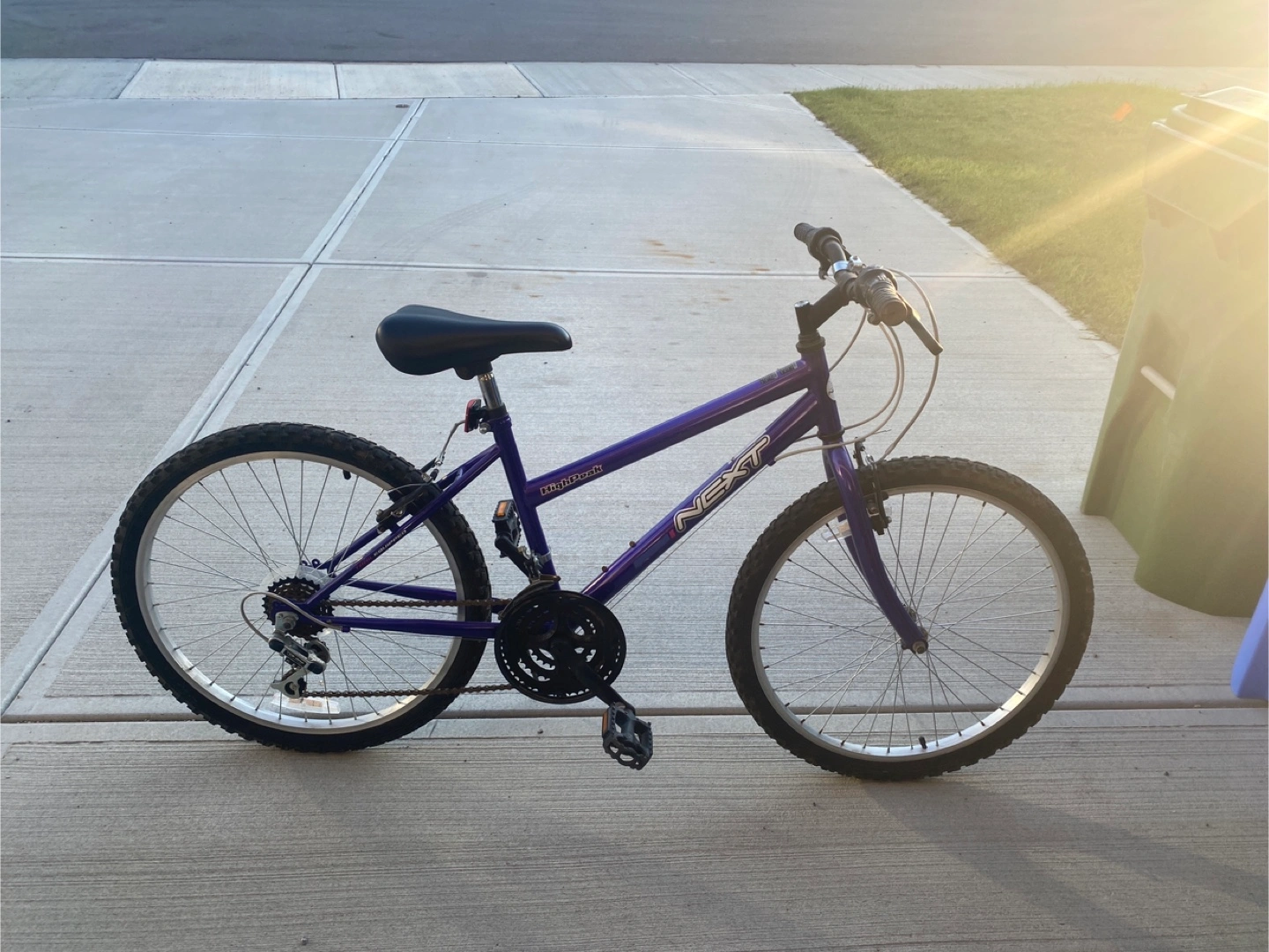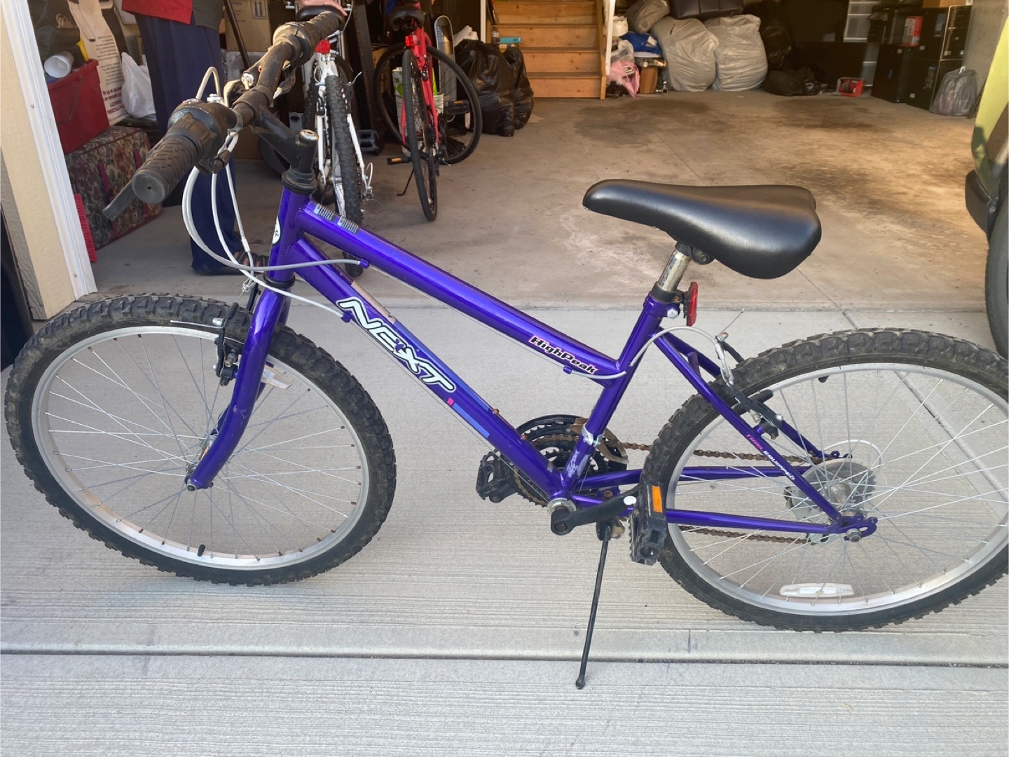 Selling a Next High Peak mountain bike in purple. It's ready for some off-road adventures!