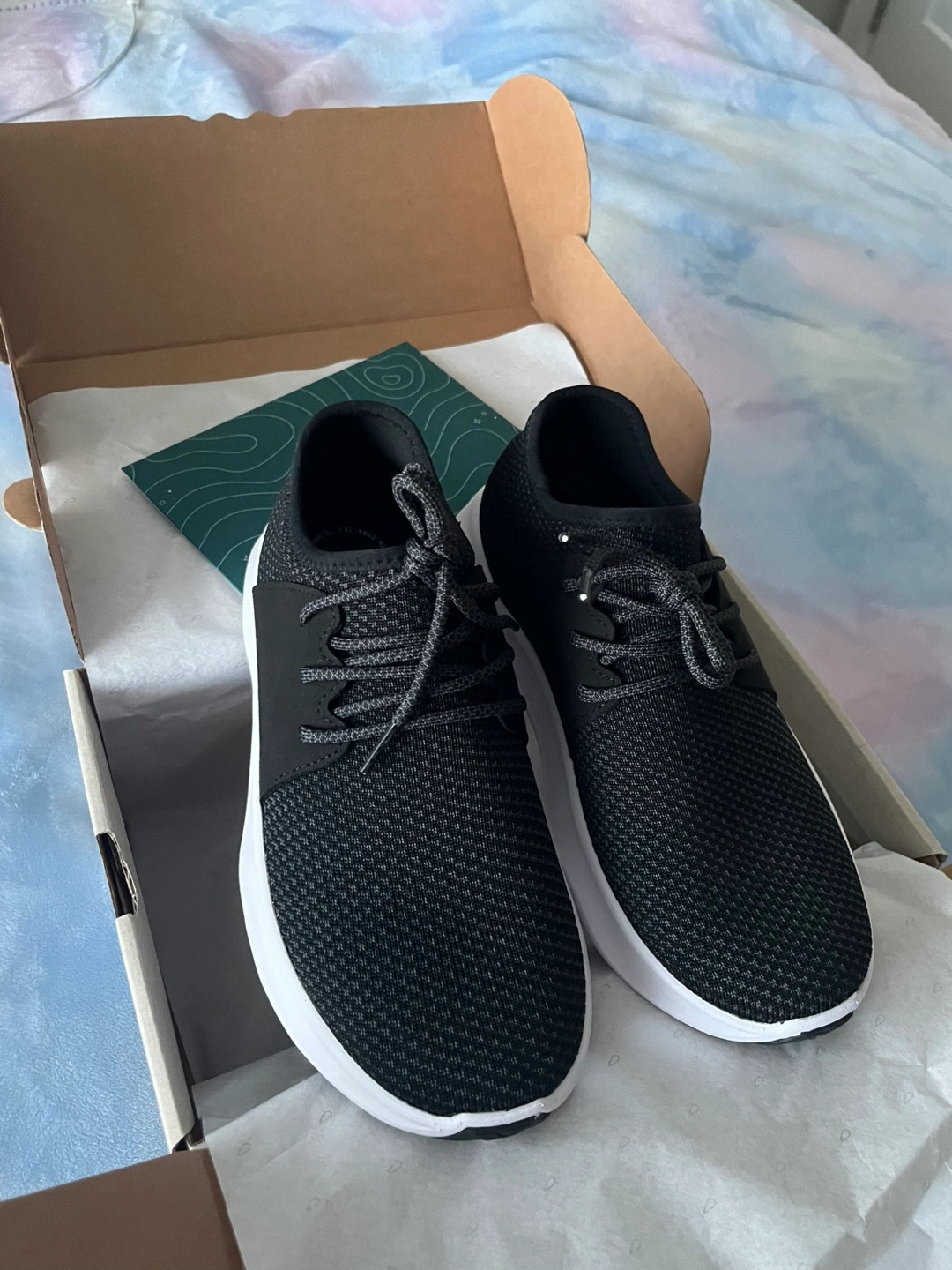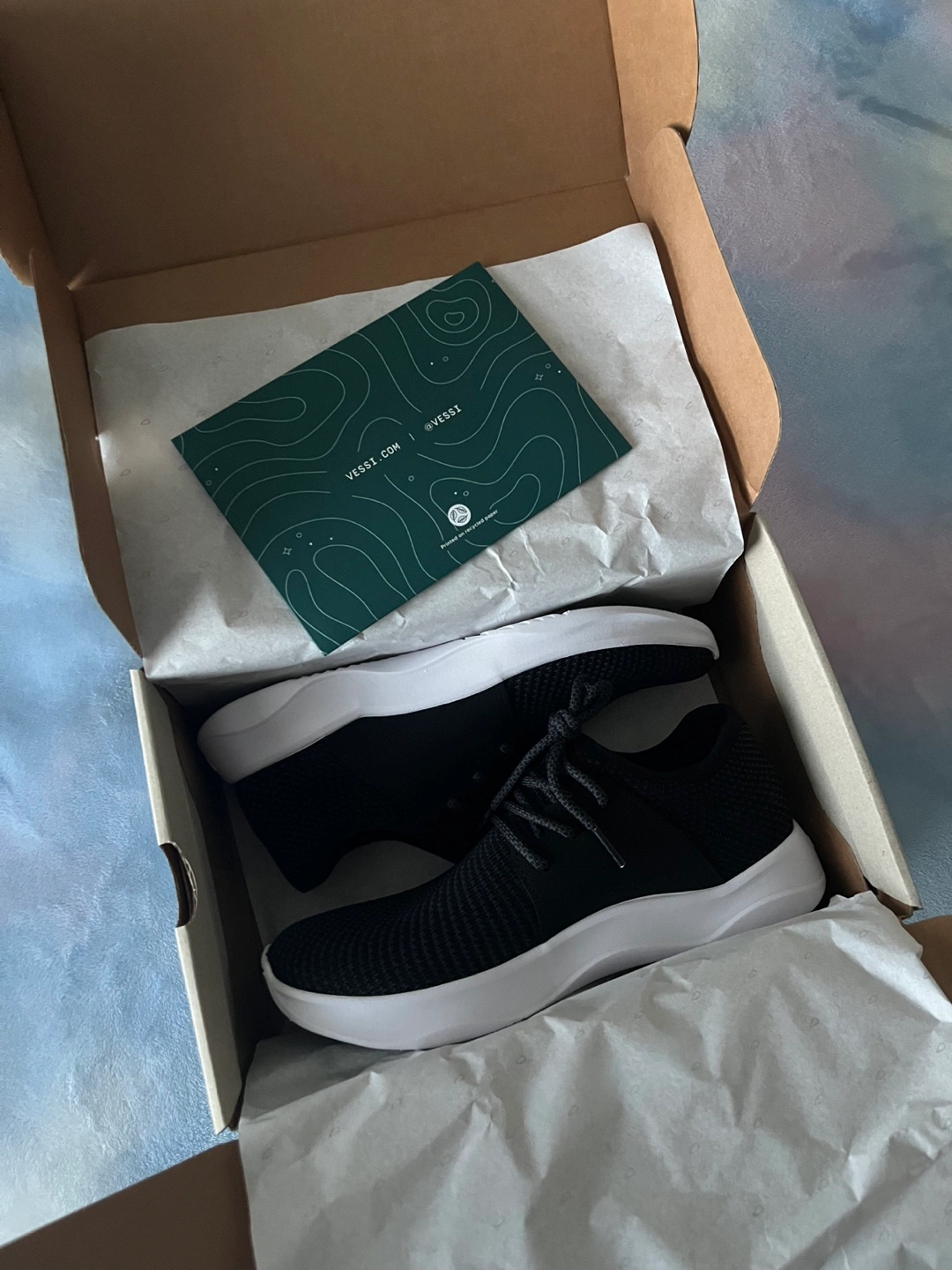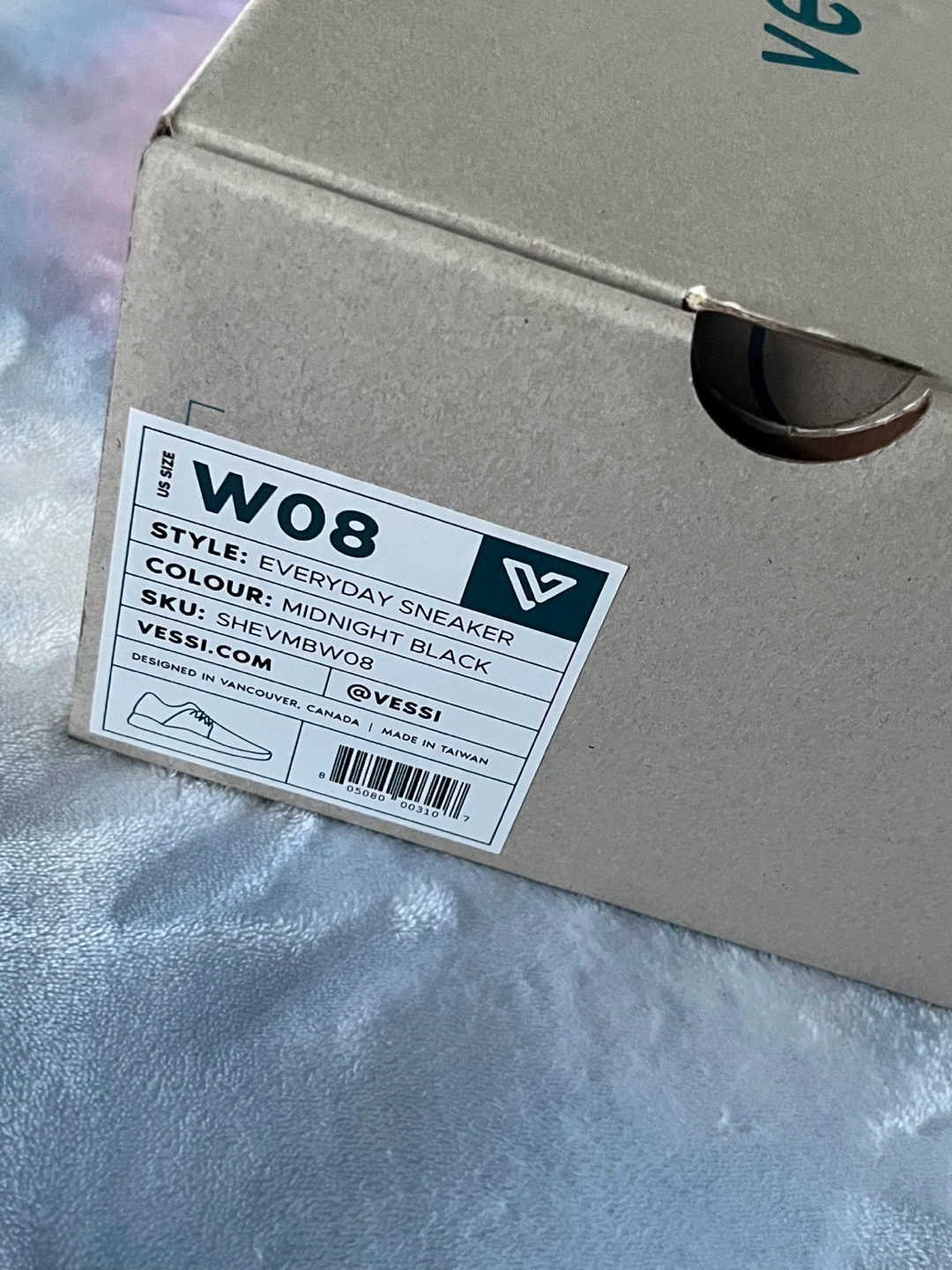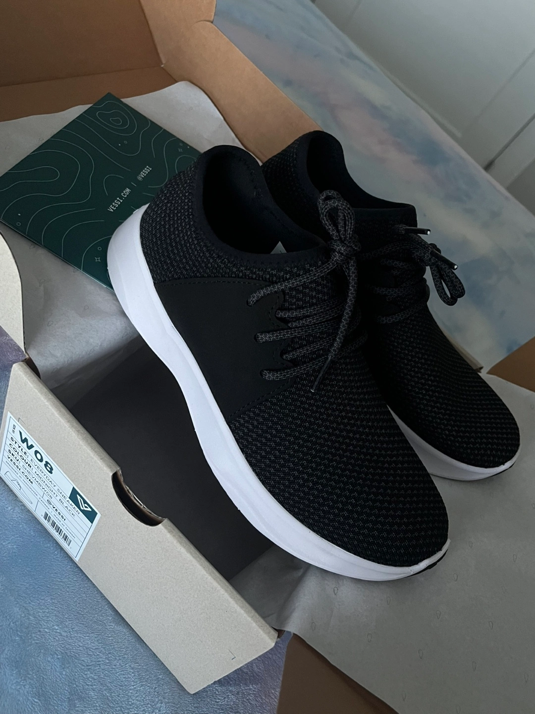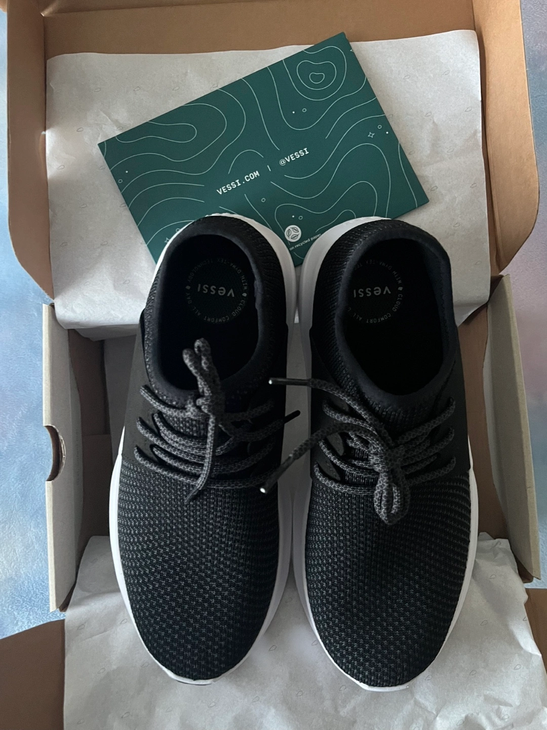 Selling a pair of Vessi Everyday Sneakers in Midnight Black, women's size 8! They come with the original box and are in brand new condition. These sneakers are designed in Vancouver, Canada. This is the old version of this shoe, they donât have the blue accents like the new one.