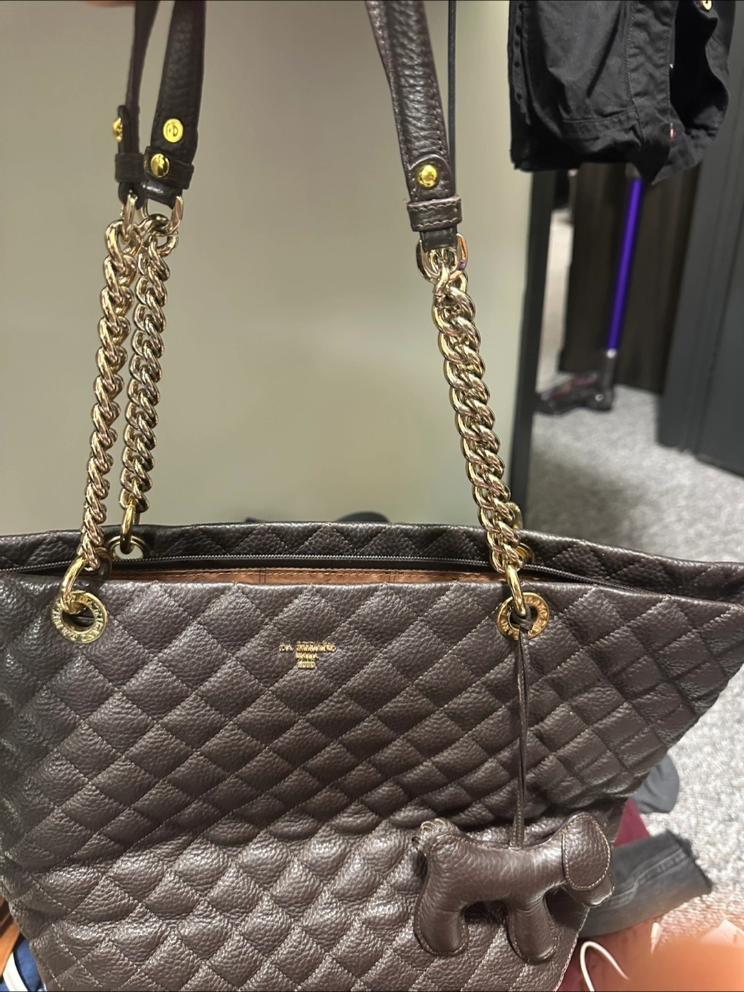 Da MILANO brown quilted tote bag with gold chain detailing. Great for everyday use or a night out