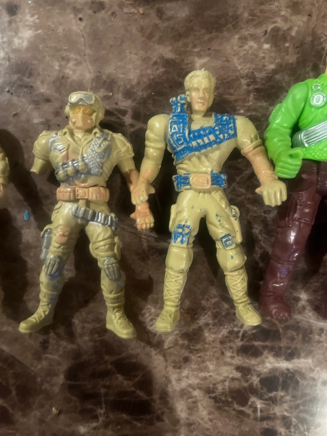 Selling a collection of toy soldier action figures. They show some signs of wear from play, but are still in good condition for imaginative play or collecting G.I Joes