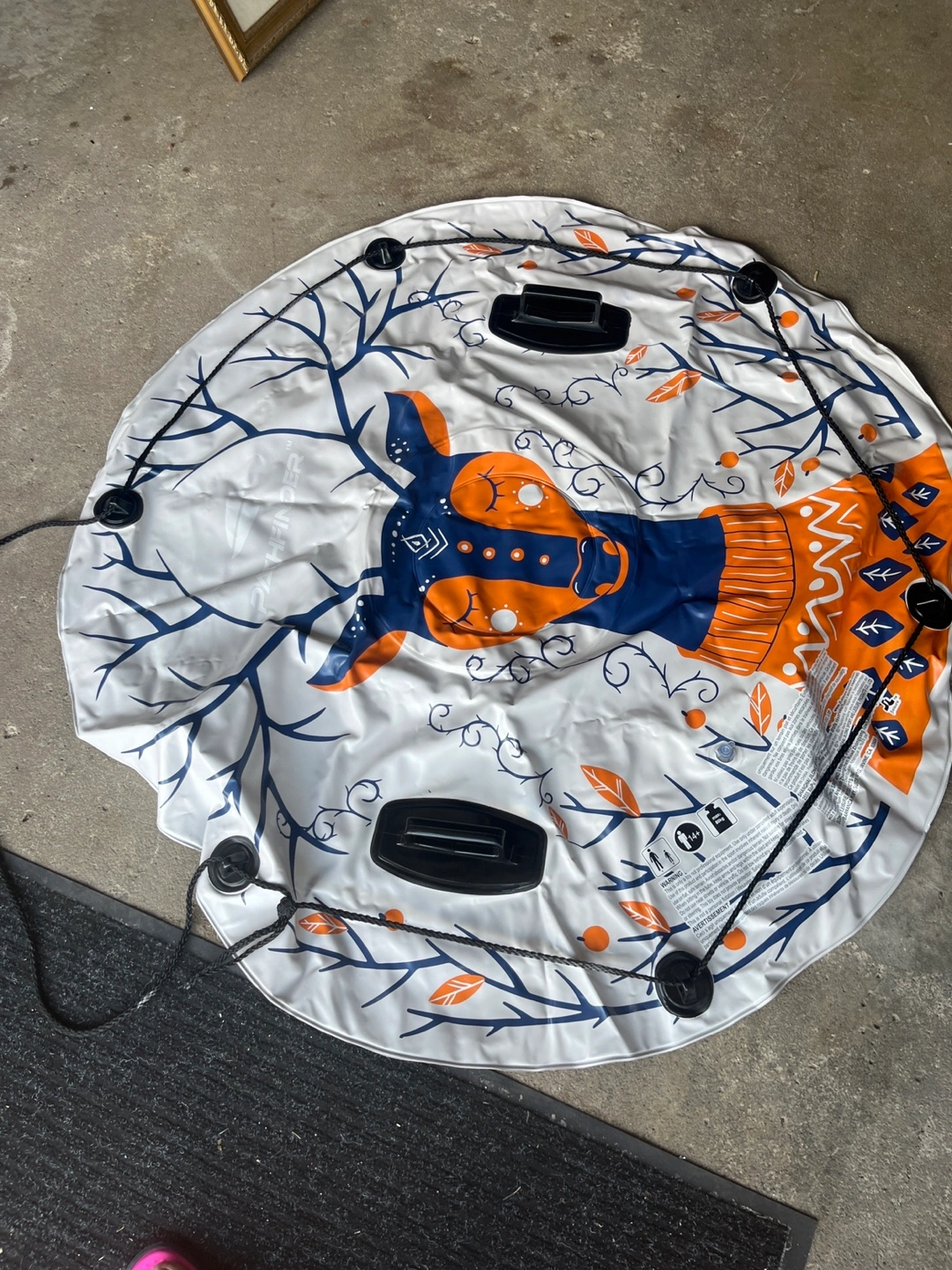 Selling a fun Pathfinder snow tube featuring a cool deer design! Great for floating in water too Never used 48” diameter It looks to be about 48 inches in diameter. Recommended for ages 14+ and can hold a max of 80kg