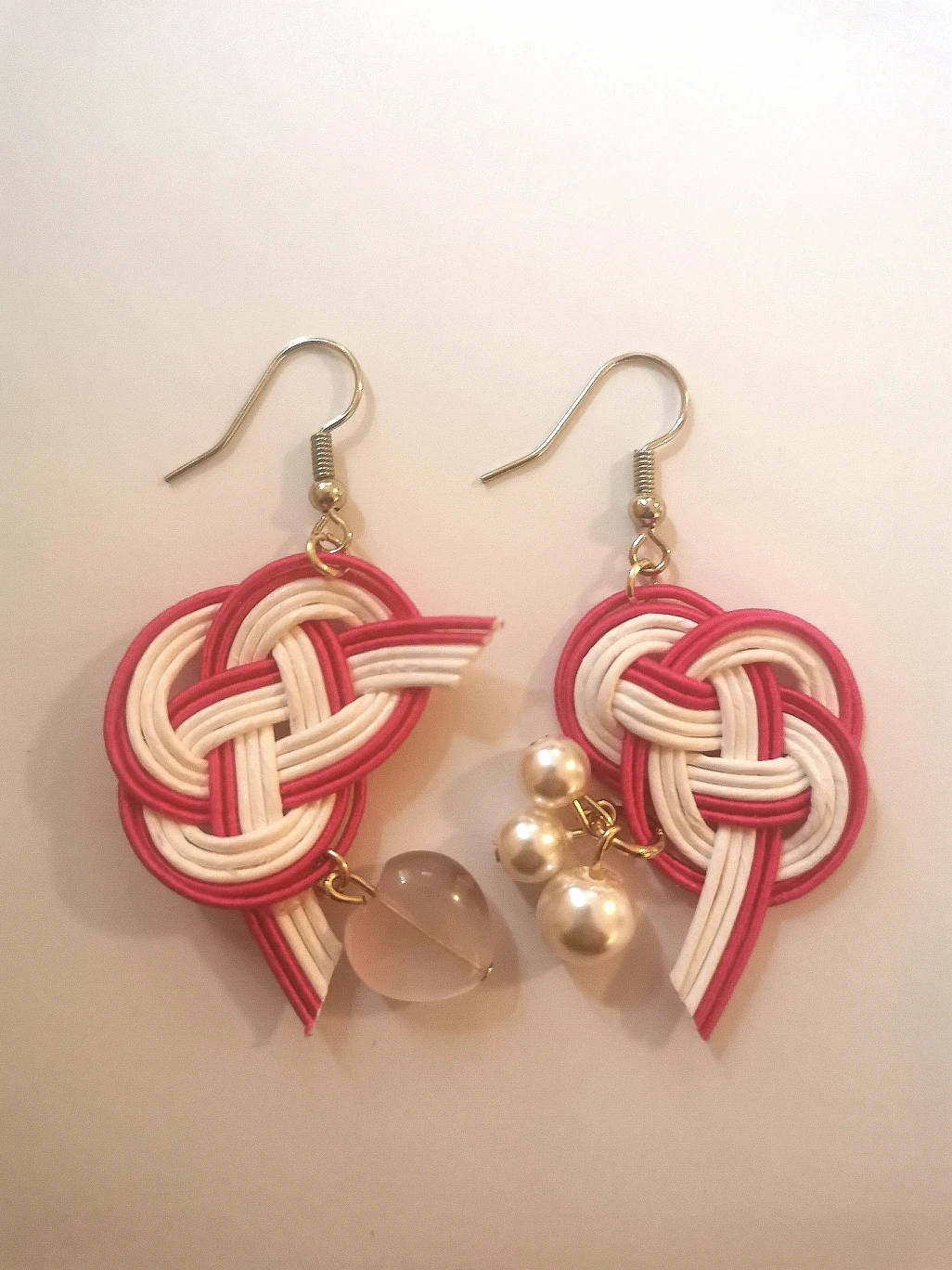 *Handmade Mizuhiki Earings inspired by Japanese traditional Mizuhiki art. Made from a paper cord. *What's Mizuhiki? It's refers to a form of decorative art used in Japan at auspicious events. They are beautiful ornamental cords that come in colors such as red/white and white/black and are used to tie gift wrapping and envelopes. *DM me for more details