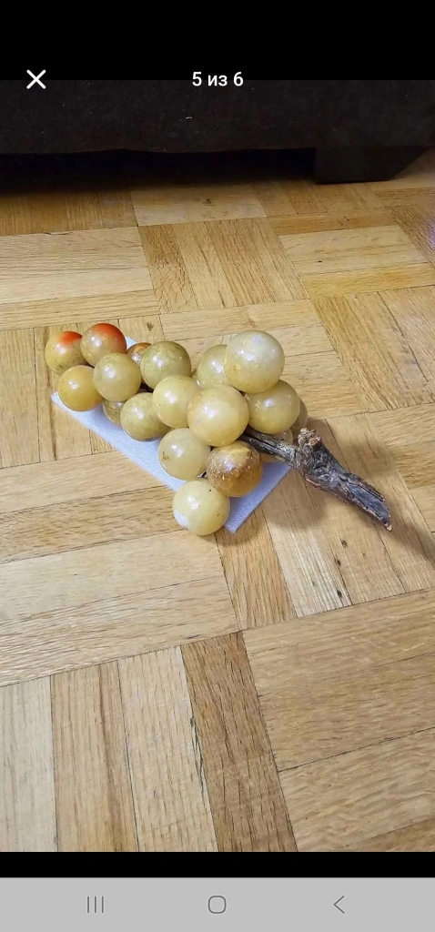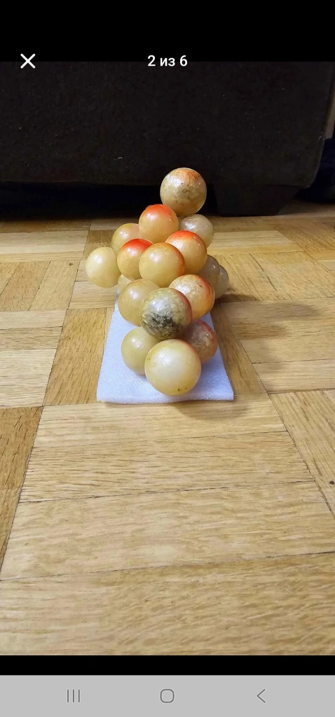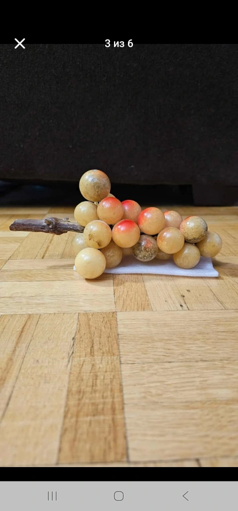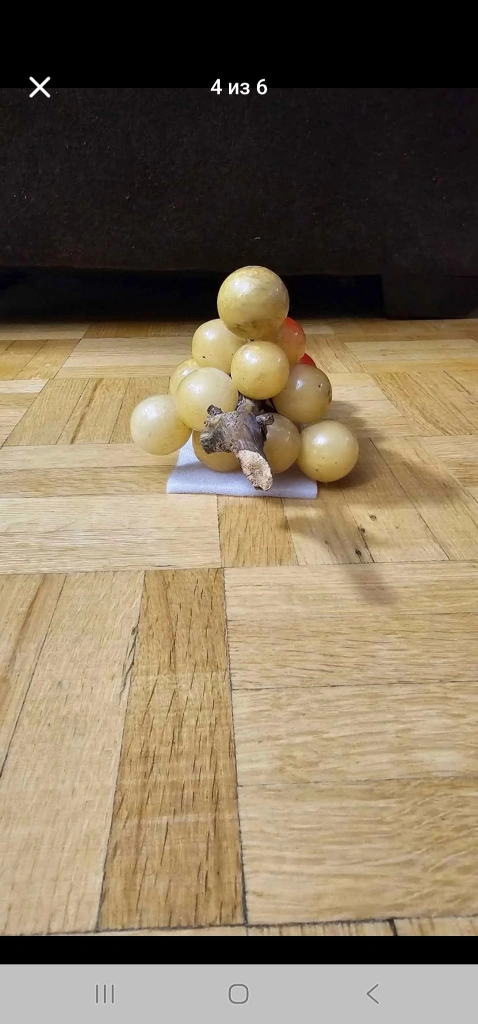 Here's a Mid-Century grape cluster sculpture! It's made of albaster and olive stick. It's a unique piece that would look great on a shelf or table