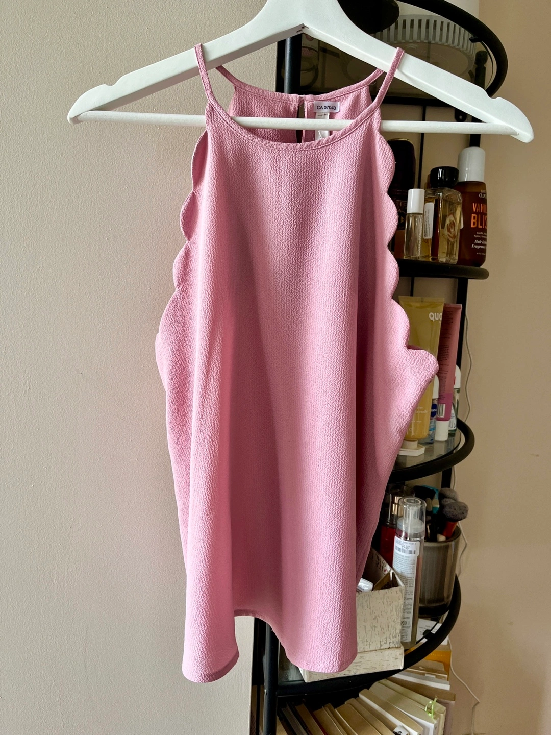 Here's a cute pink tank top with a scalloped hem! It's in perfect condition (worn once) and would be a lovely addition to your summer wardrobe.