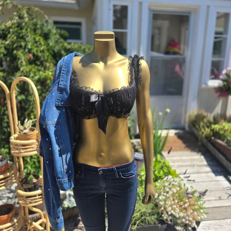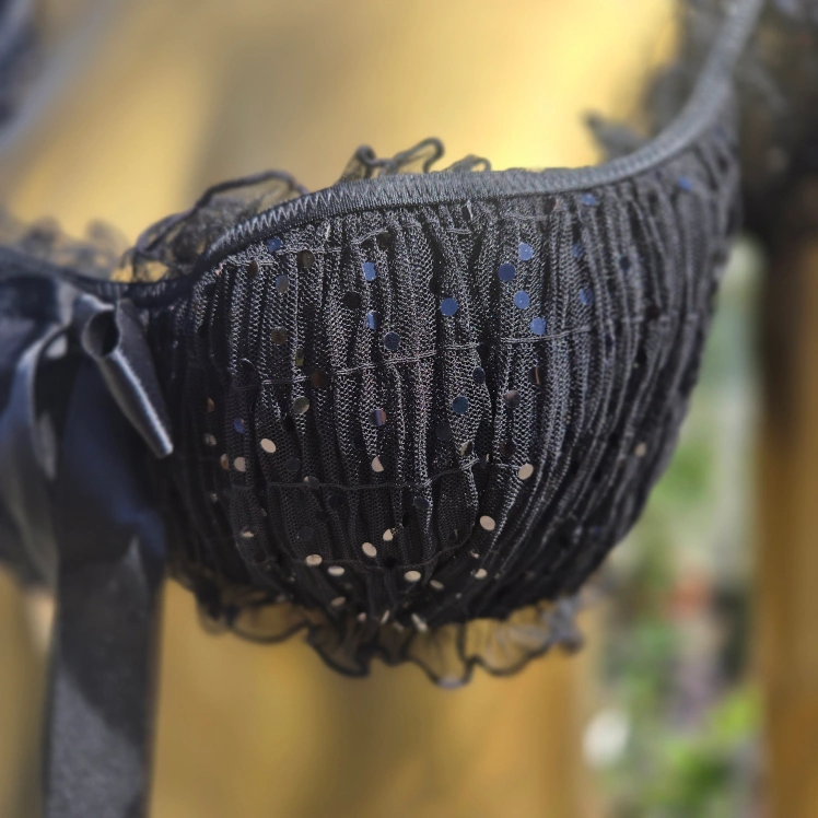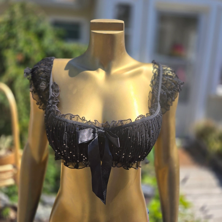 Selling a cute black cap sleeve top from Love La Senza! It's a size L/G and features a ribbon detail and black sequins. Wear it for every occasion inside or outside!