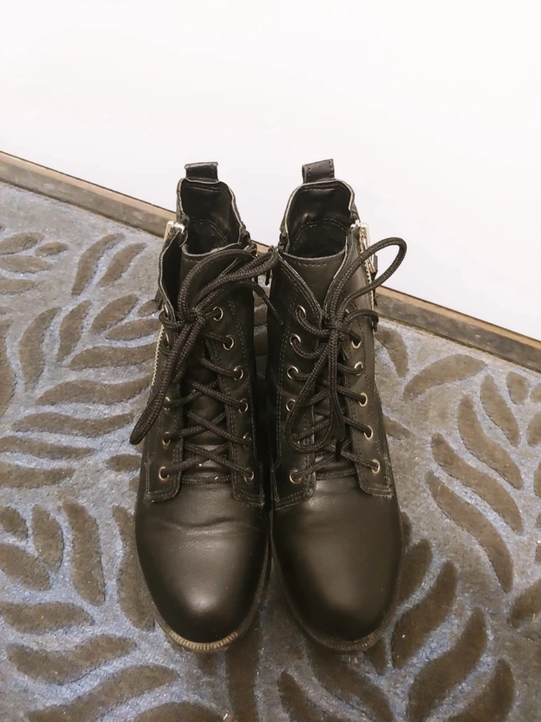 Selling a pair of black leather ankle boots bought from Korean online brand. It is like new - only worn once. The size is 240 (7 US size). The front is little bit narrow so it will fit anyone in 6.5~7 US size. Has zipper on both sides.