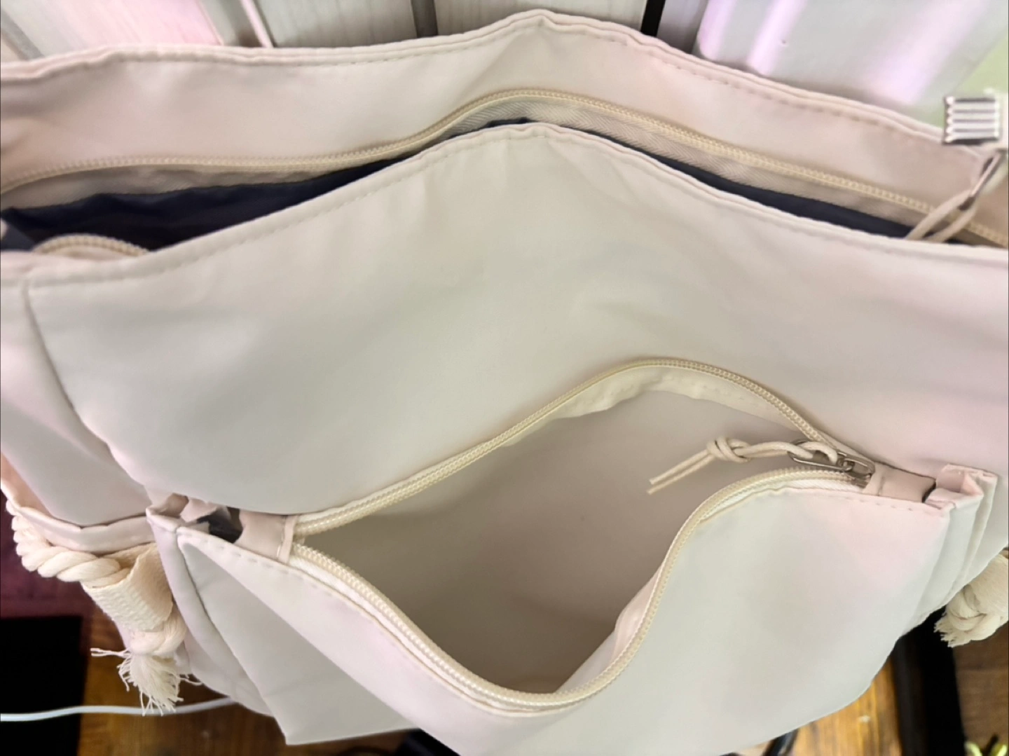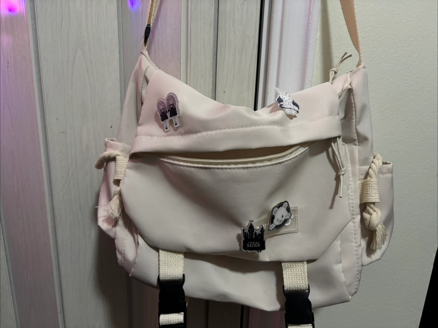Selling a cute off-white crossbody bag! It has a few pockets and a zipper. Perfect for carrying your daily essentials around town!