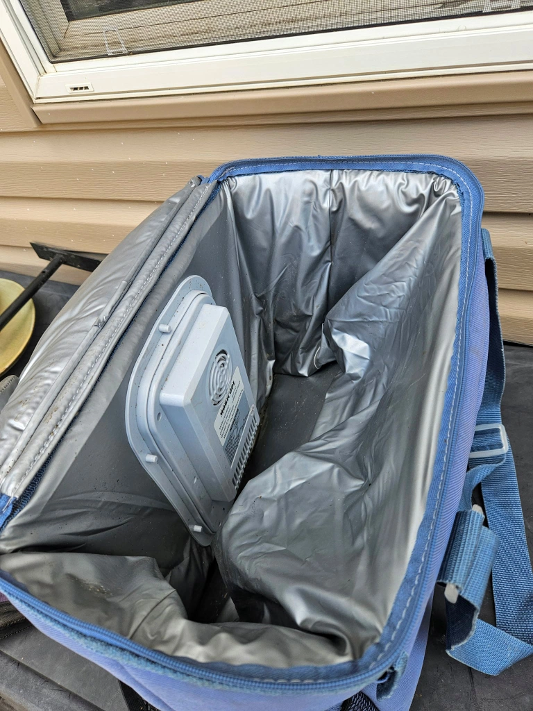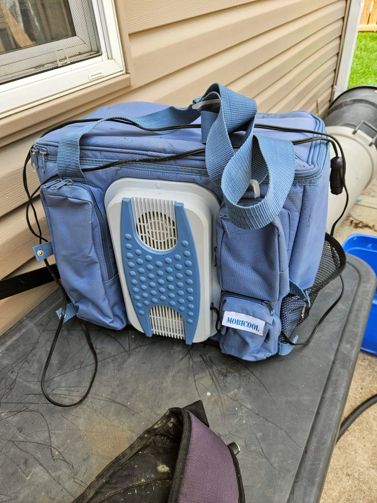25Here's a Mobicool cooler bag in blue! It's great for keeping your drinks and snacks cool on the go. Perfect for picnics, camping, or road trips 12 volt lighter plug