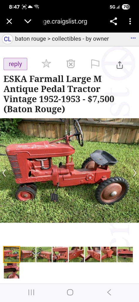 25Selling a vintage ESKA Farmall Large M antique pedal tractor from 1952-1953. It's a unique collectible! rough condition needs slot of work good project worth a ton of money when restored