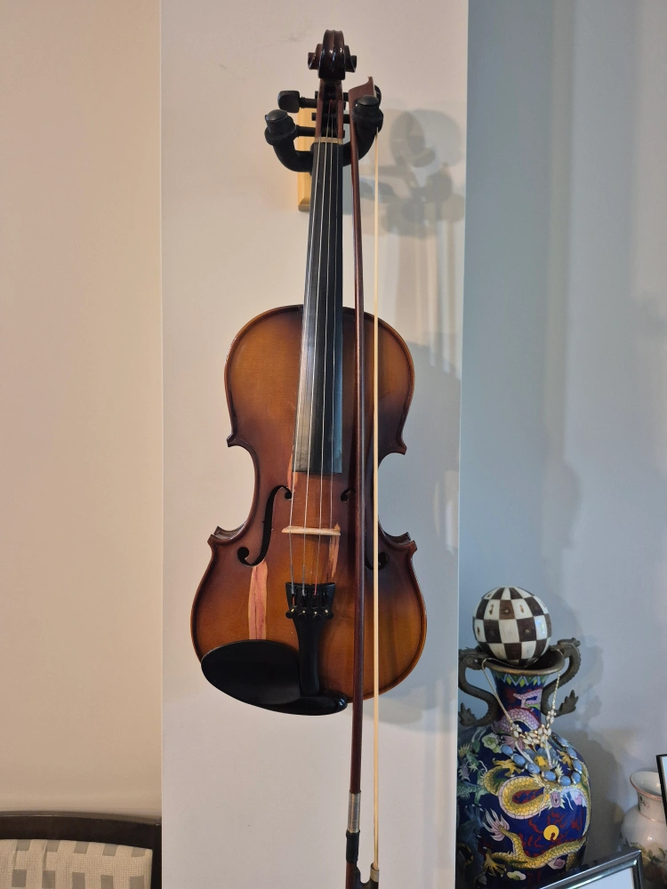 Selling a violin with its bow. It's in good condition and ready to play! Perfect for someone looking to start learning or upgrade their current instrument