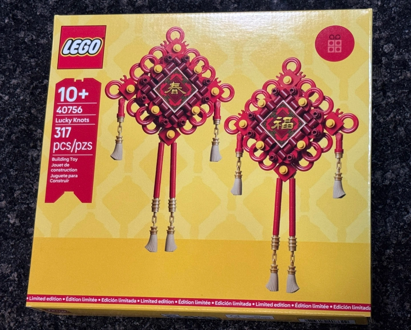 Brand new, unopened LEGO set, Lucky Knots (40756)! This limited edition set contains 317 pieces to build two beautiful decorative knots. Recommended for ages 10+. The box is included and in perfect condition, ready for gifting or adding to your LEGO collection!