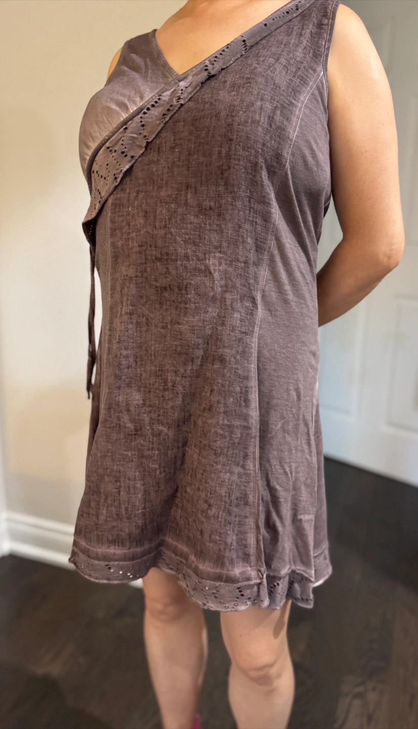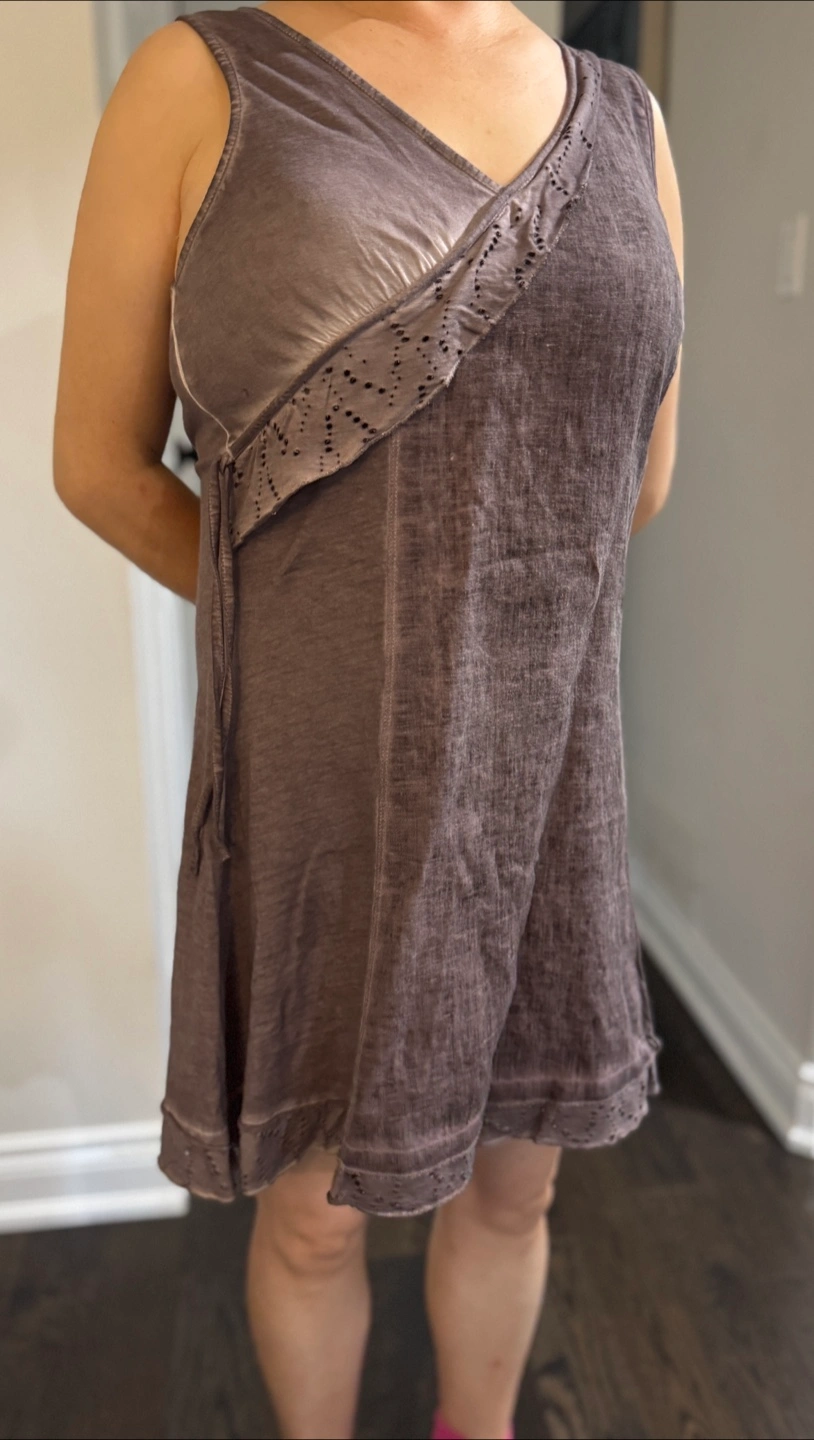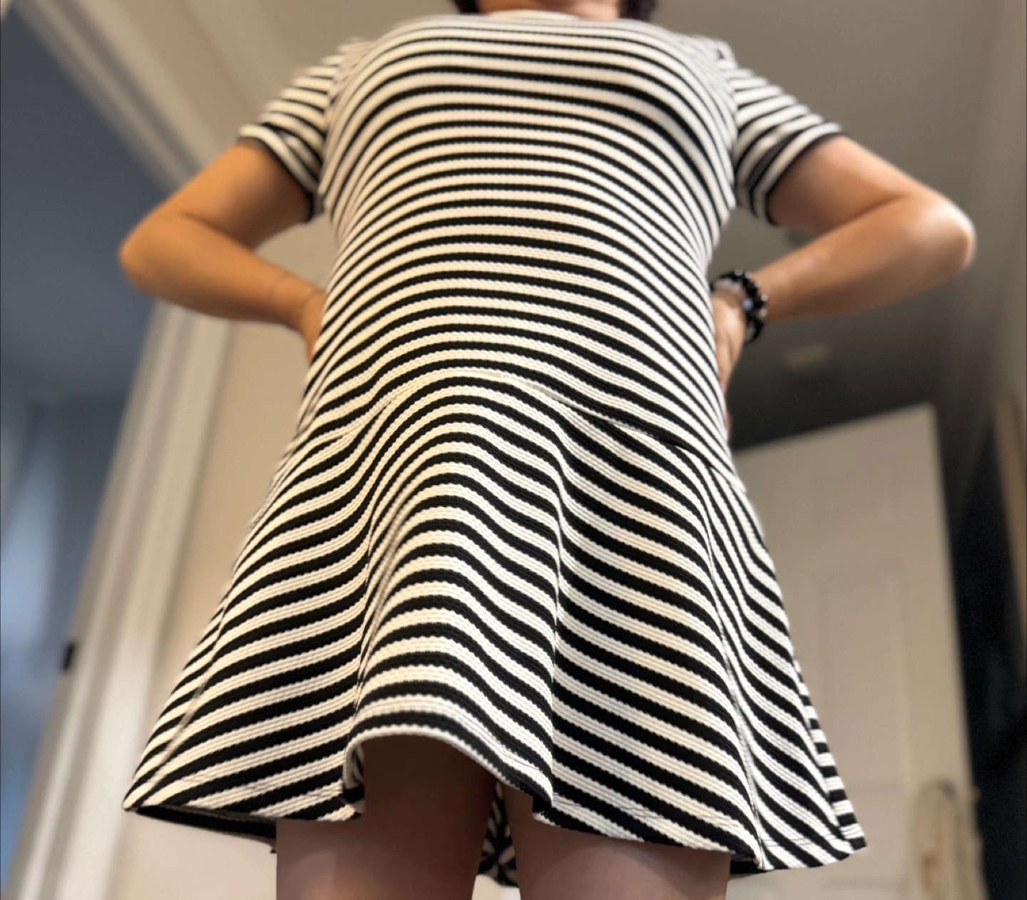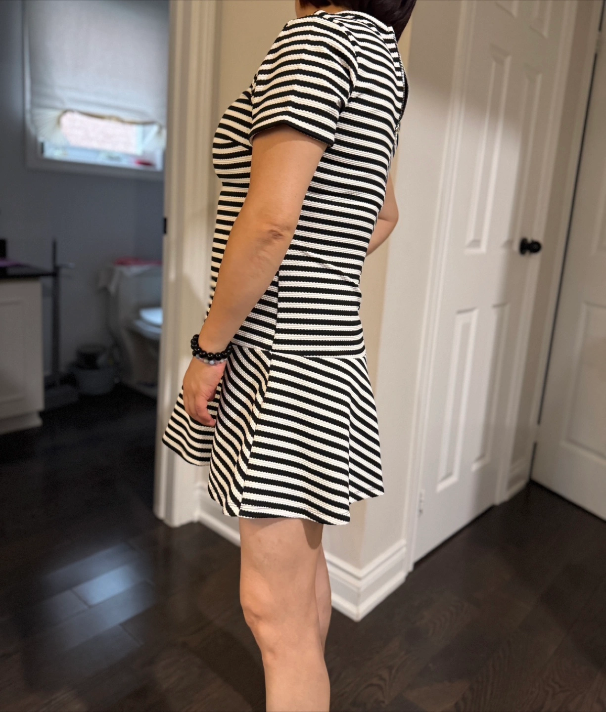 Selling a bundle of two casual dresses. One is a black and white striped dress, and the other is a brown dress with unique detailing. Able to meet Donmills Station. Two for $18