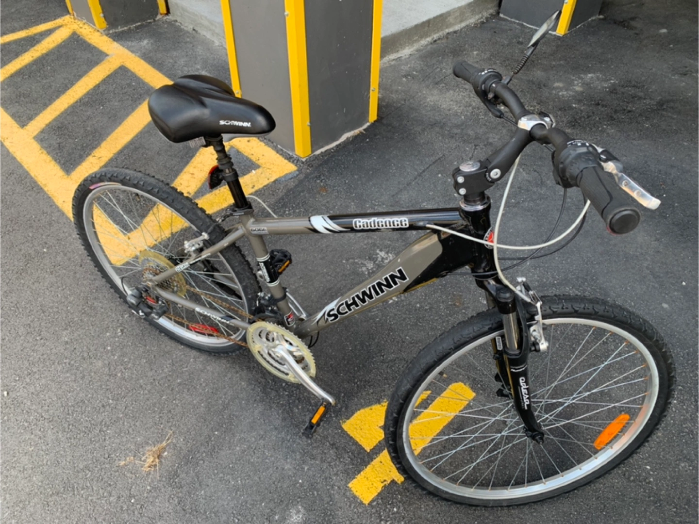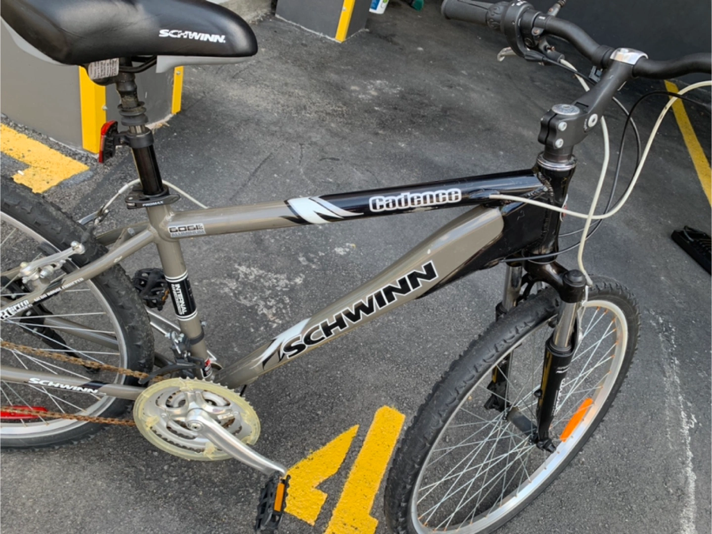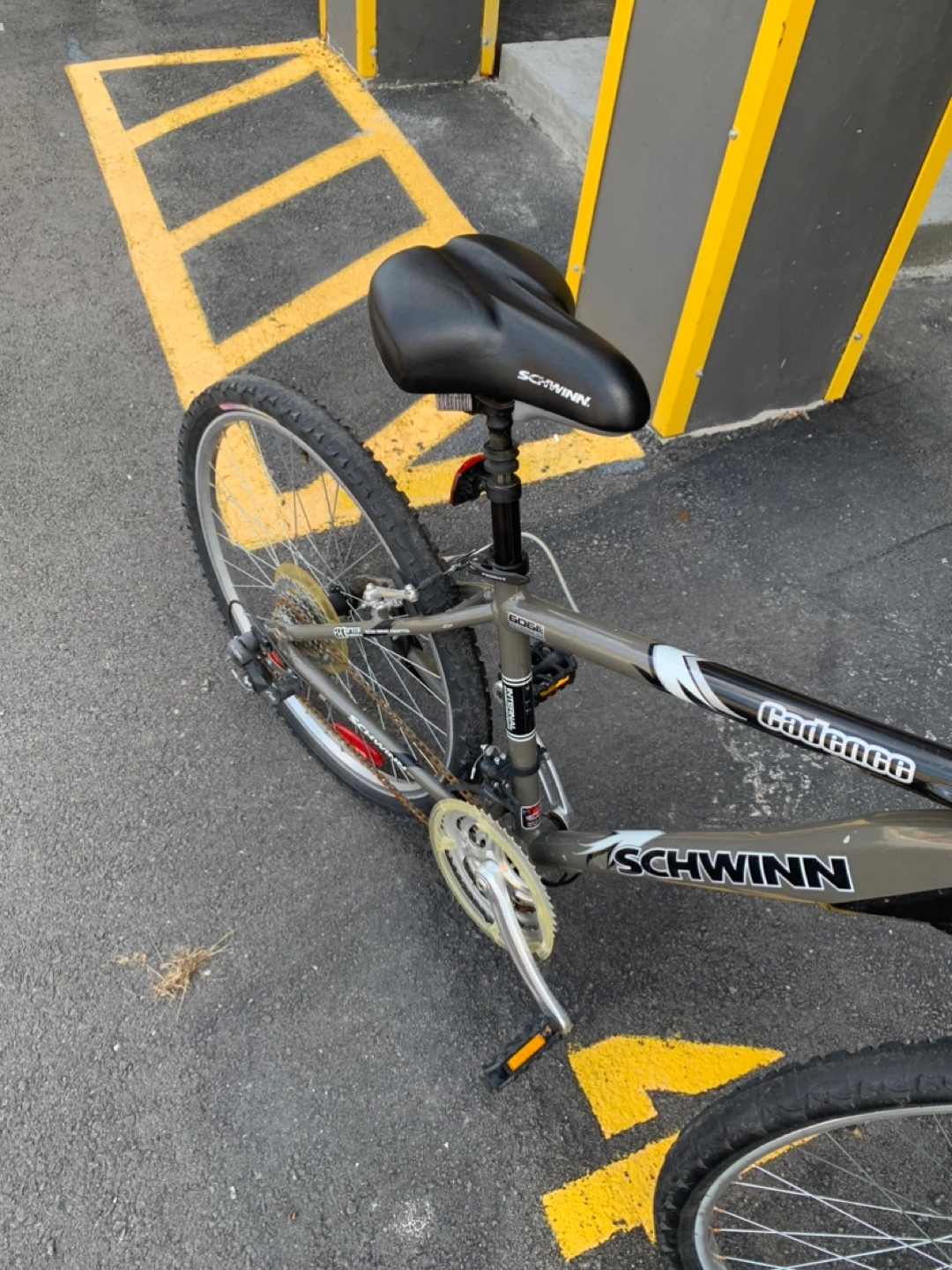 Selling a Schwinn Cadence mountain bike. It has a black and grey frame with Schwinn branding. Perfect for trails or getting around town!