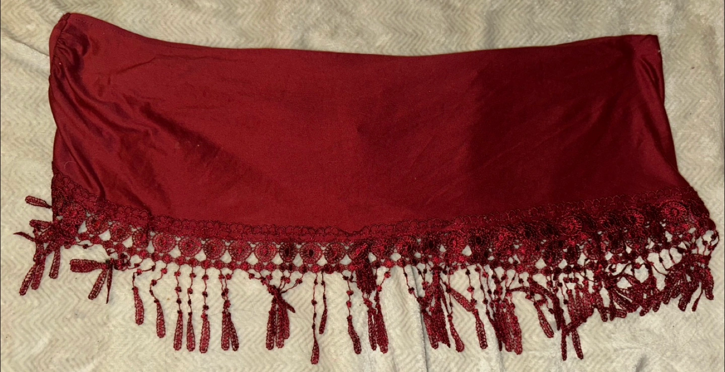 Selling a cute burgundy halter top with a decorative fringe! It's perfect for summer or a night out. The material is soft and comfortable.