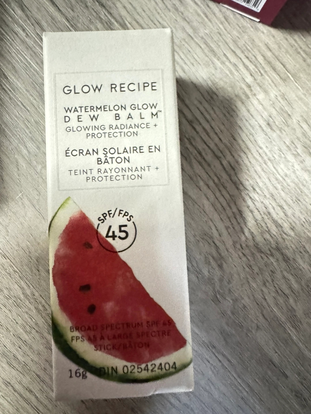 Selling a Glow Recipe Watermelon Glow Dew Balm with SPF 45! It provides glowing radiance and protection. This balm comes in a stick/baton form and contains 16g of product