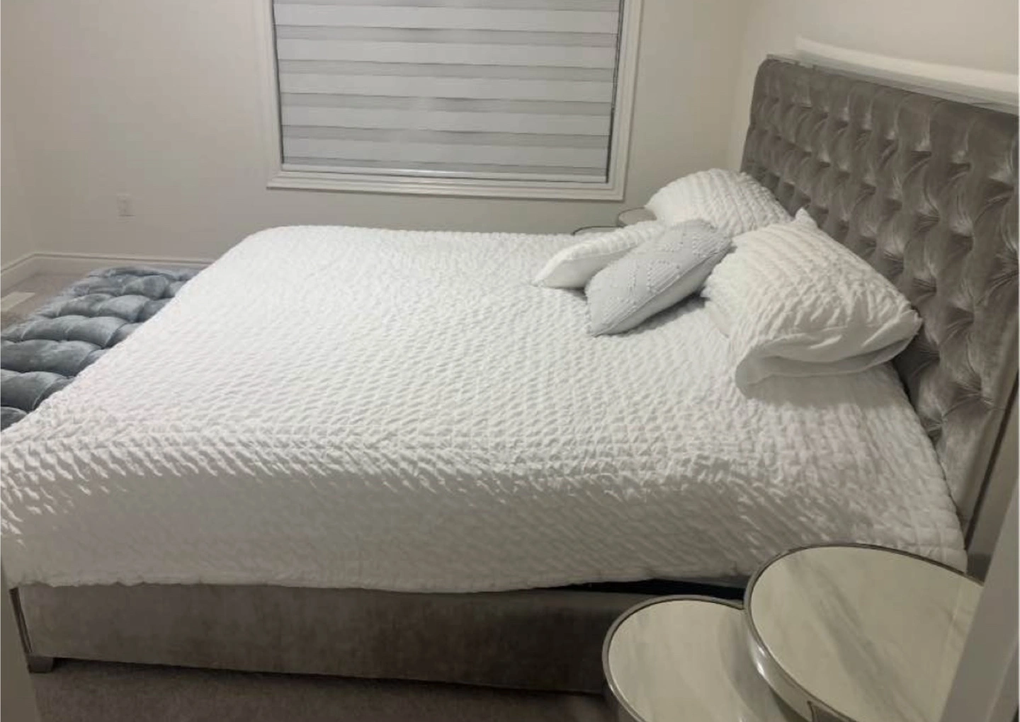 Looking to redecorate, so I'm selling my upholstered king grey velvet bed frame and mattress. It features a stylish tufted headboard that adds a touch of elegance to any bedroom. The bed frame is in great condition used for guest bedroom and ready for a new home. If you're interested, please send me a message!