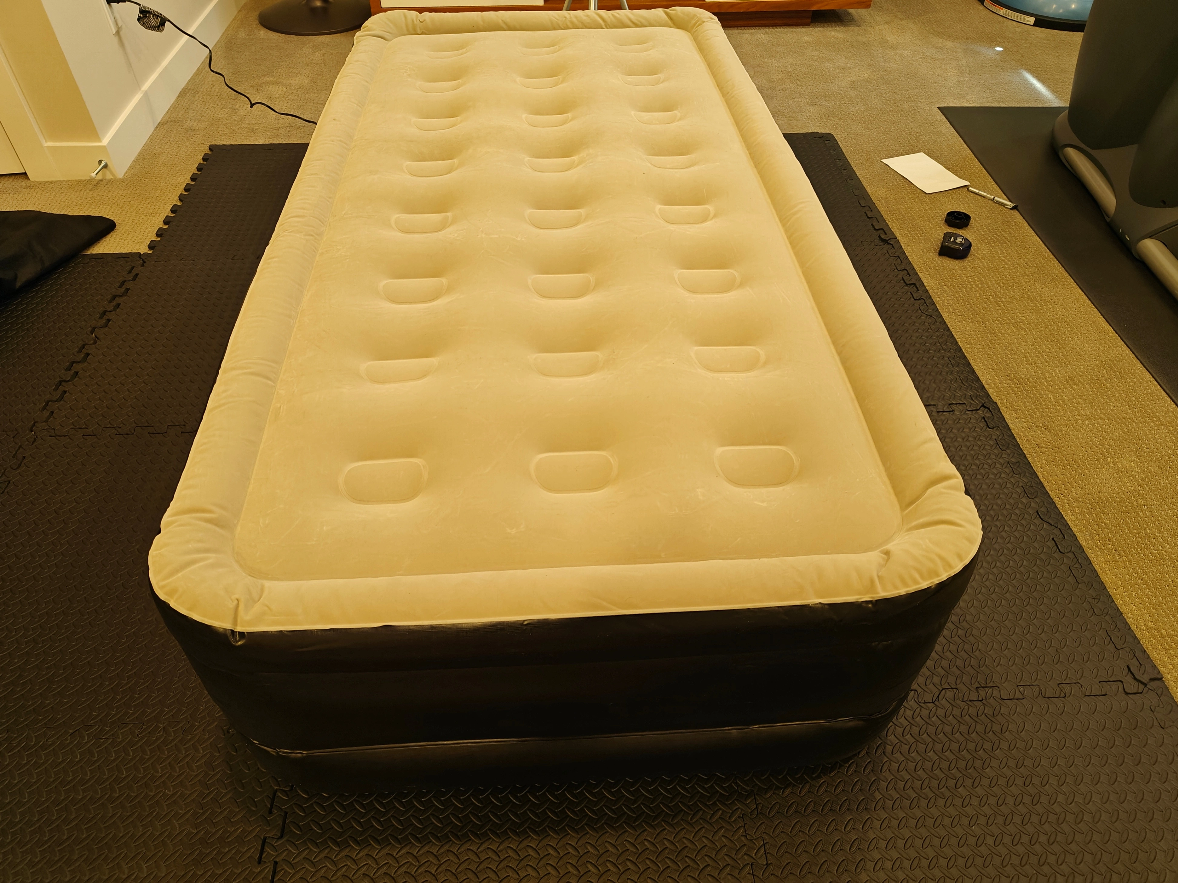 NOTE 1: The original ON/OFF knob does not fully twist to operate the pump (we believe this is a design flaw and was purchased this way). However, when you remove the two small screws holding the knob, you can easily turn the underlying mechanism to inflate, deflate, or turn off the pump. The photos show the knob removed and the video shows the bed being inflated. We also no longer have the manual; however, it can be found online. NOTE 2: Price is firm. YouTube Video: https://youtu.be/vmXd15FIR8o I am selling a Bestway Indoor Twin Double-High Inflatable Air Mattress with Built-In Pump in like-new condition. The pump and mattress were tested and held for several days and there are no holes and the pump is in tested and working condition. Was purchased but we ended up never using it. Purchased in 2018 and just kept in storage. Need extra sleeping space for one person in a flash, this Twin (Single) size DreamZone air mattress is the perfect solution. It boasts a powerful built-in Sidewinder AC electric pump for super quick inflation and deflation – no external pump needed. When not in use, it packs neatly into its included storage bag (as shown in photos). Ideal for overnight guests, sleepovers, or indoor use. This inflatable air mattress provides superior comfort with even weight distribution to prevent sagging, ensuring a restful night's sleep. The mattress inflates and deflates quickly using its integrated pump that plugs into any standard outlet, making setup and storage a breeze. Model: Built-In Sidewinder AC P3042 Thermally Protected Electric Pump 110-120V 60Hz 0.8A Fully Inflated Dimensions: * Height: 15" * Width: 36" * Length: 60" Storage Dimensions (approximate) * Height: 8" * Width: 16" * Length: 21" Comes from a pet and smoke-free environment. Pickup in Mount Pleasant (NW Calgary)