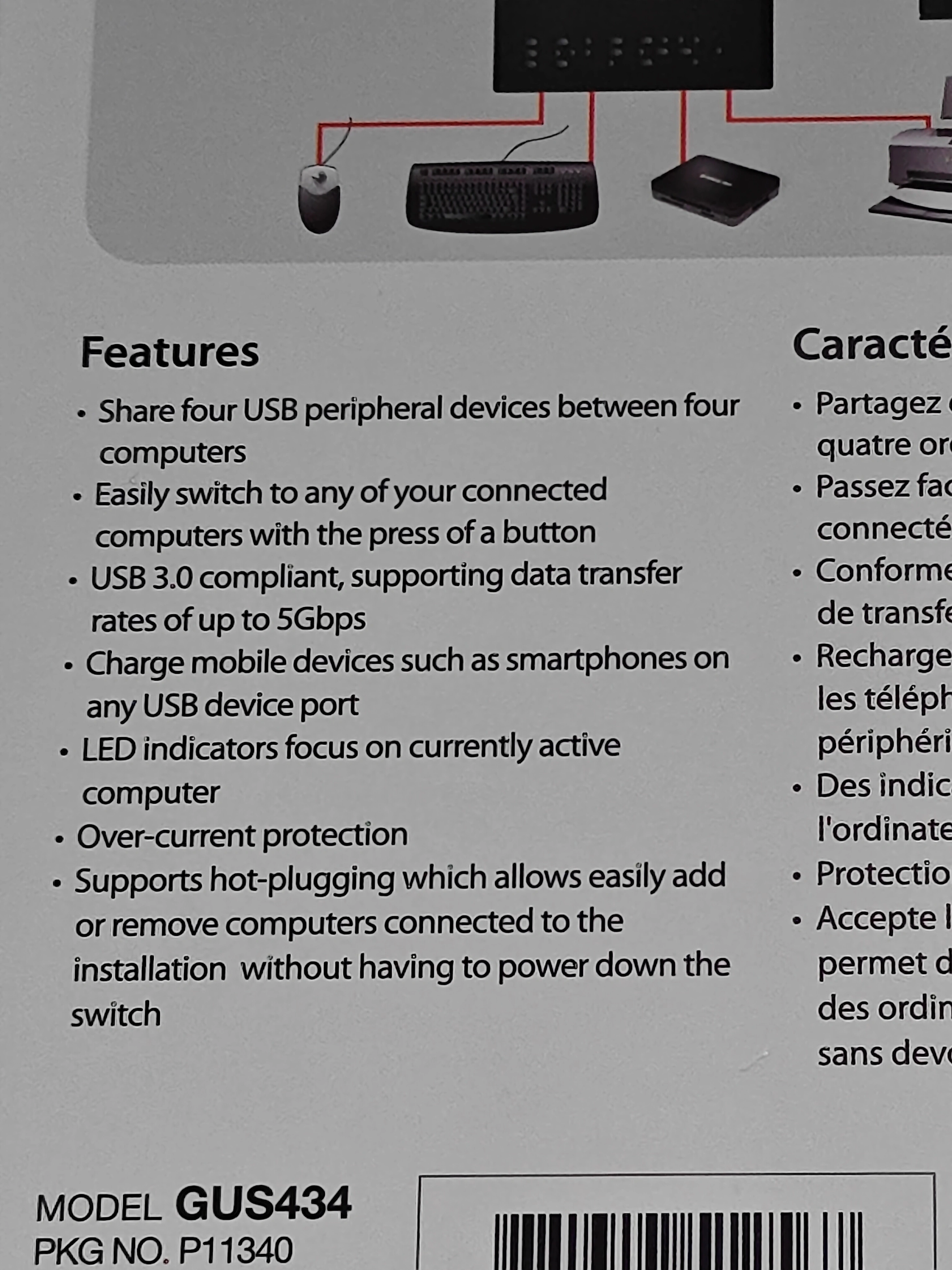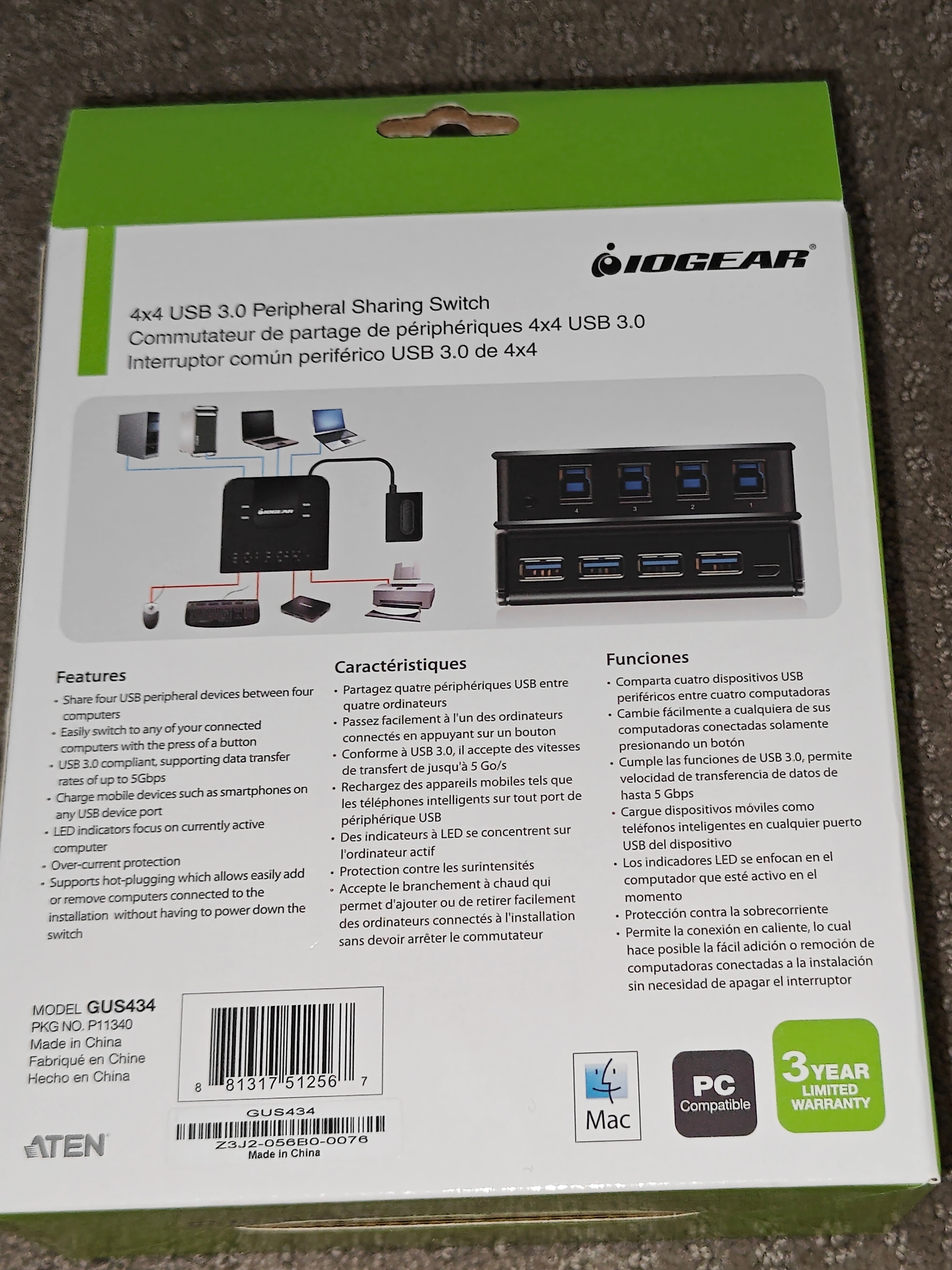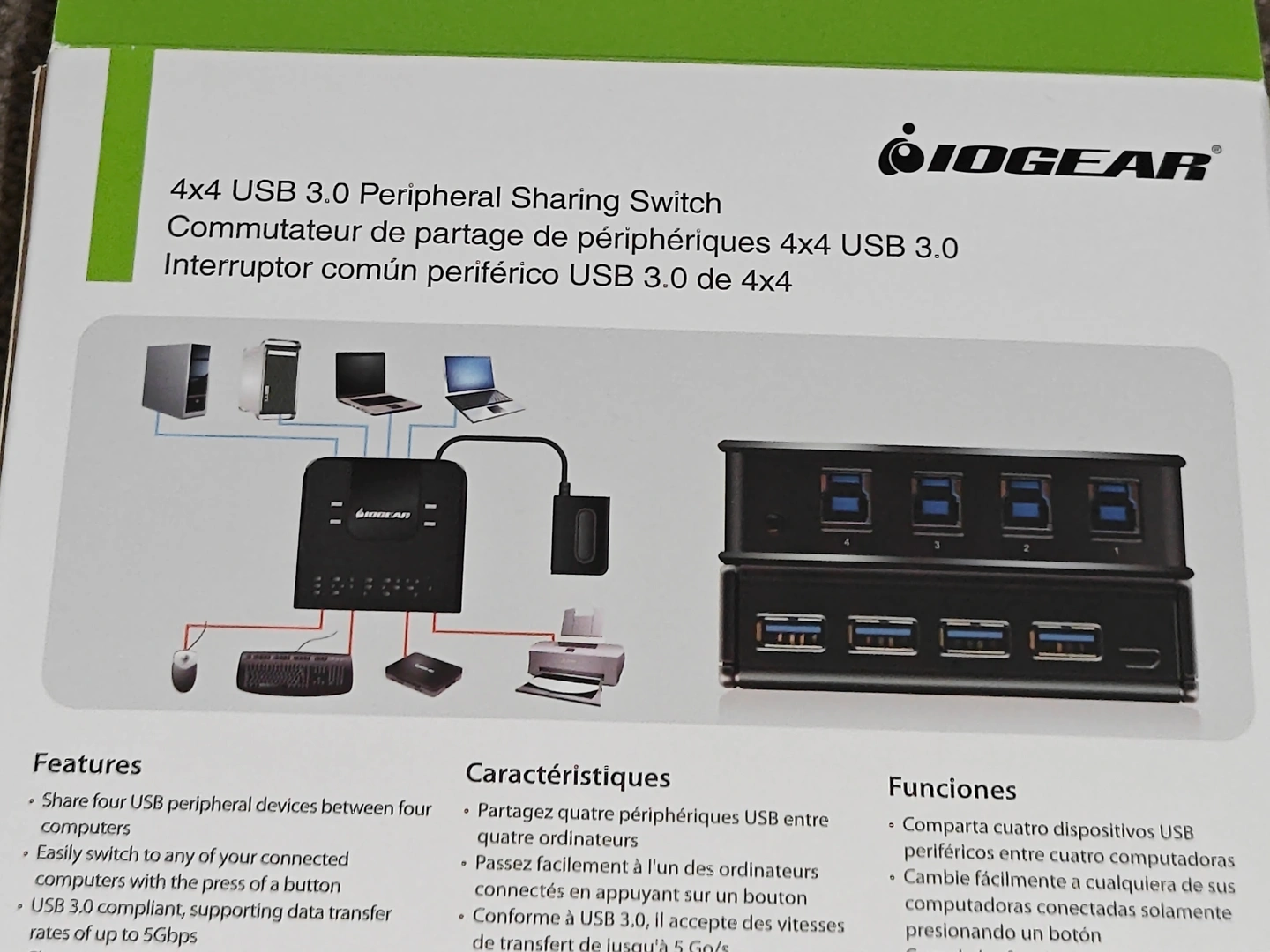 NOTE: Price is firm. I am selling a IOGEAR 4x4 USB 3.0 External Peripheral Sharing Switch - 4 Ports - Model: GUS434 in new condition. Purchased but ended up not using. IOGEAR's 4x4 USB 3.0 Peripheral Sharing Switch provides a convenient means to share four USB devices between four different computers. A simple press of the button changes the connection of four USB devices such as keyboard, mouse, printer, portable hard drives, etc. from one computer to another. Includes: 1 x 4x4 USB 3.0 Peripheral Sharing Switch (GUS434) 4 x USB 3.0 Cables 1 x Console Selector Button 1 x Quick Start Guide 1 x Warranty Card Features: * Save space - The GUS434 allows a single set of peripherals to be shared by four computers. Perfect for small office / home office users, the IOGEAR USB 3.0 Peripheral Sharing Switch creates a space saving, convenient and productive work environment. * Switching made easy - Easily switch to any of your connected computers. Simply pull up the remote button switch to a convenient location on your desk and push the button when you need to switch between computers. * Plug and Play - IOGEAR's 4x4 USB 3.0 switch has a simple plug n play setup. Simply connect your devices and host computers and your all set to go. Also supports hot-plugging which allows you to add or remove computers connected to the installation without having to power down the switch. * Share four USB peripheral devices between four computers * Easily switch devices from one computer to another with the press of a button * USB 3.0 compliant, supporting data transfer rates of up to 5Gbps * LED indicates which computer is active * Over-current protection * Supports hot-plugging which allows easily add or remove computers connected to the installation without having to power down the switch * Optional Micro USB cable can be connected to support additional power (up to 2.5W via USB 2.0 Port, up to 4.5W via USB 3.0 Port) Requirements: * Windows 7, 8/8.1, 10, 11 * Mac OS X 10.3+ * Chrome OS * Linux-based systems * Available USB 3.0 port Comes from a pet and smoke-free environment. Pickup in Mount Pleasant (NW Calgary)