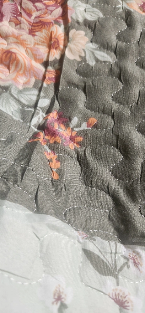 Add a touch of charm to your bedroom with this lovely floral patchwork quilt! It comes with matching pillow shams to complete the look. The quilt is available in king sizes. The design features a mix of floral and striped patterns in soft, muted colours. king sizes polyester
