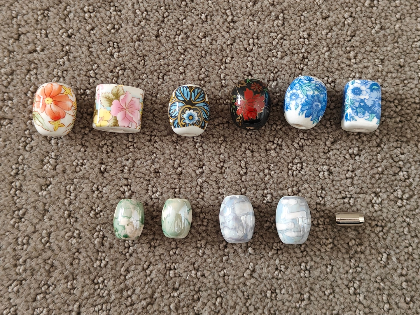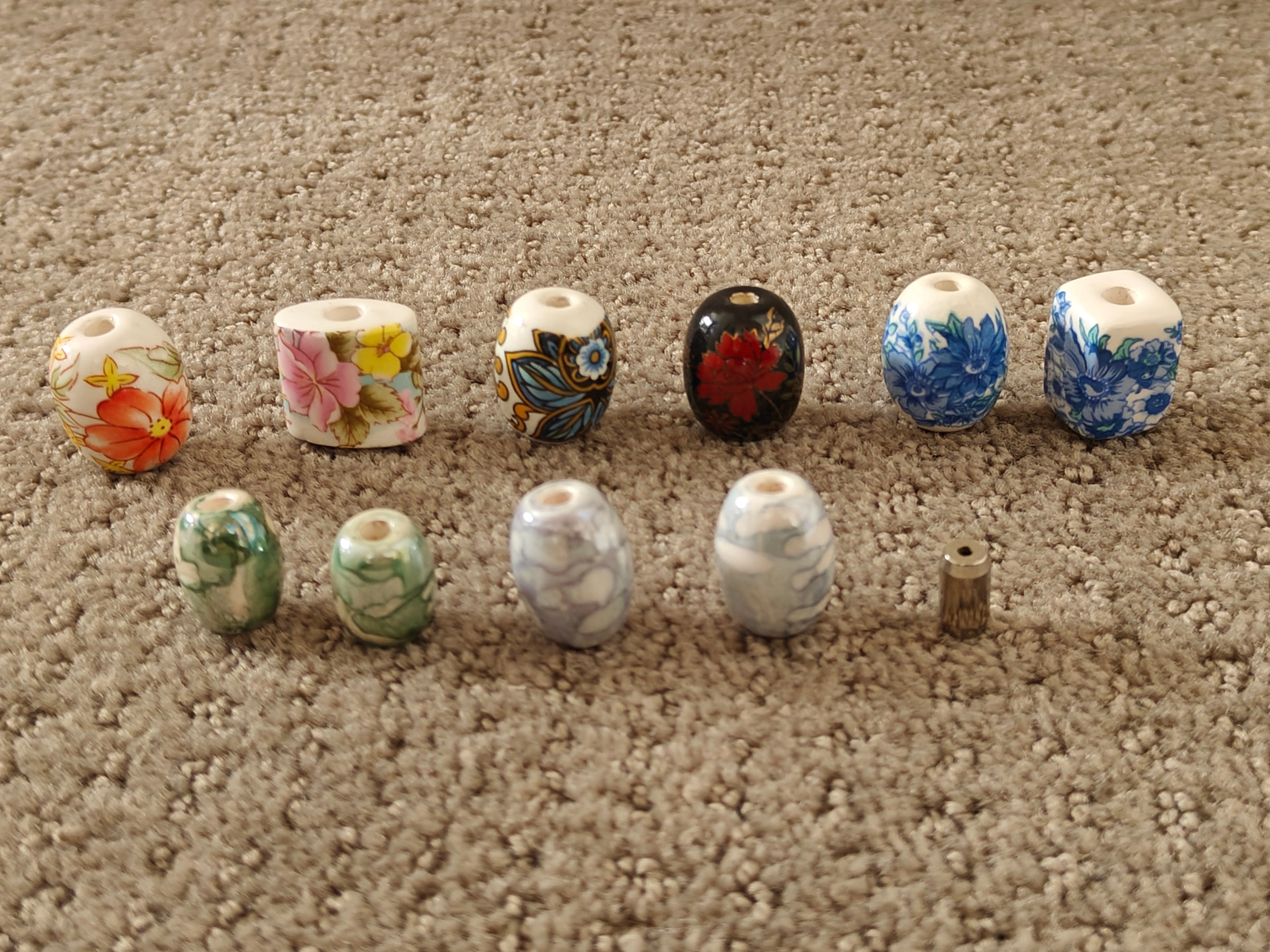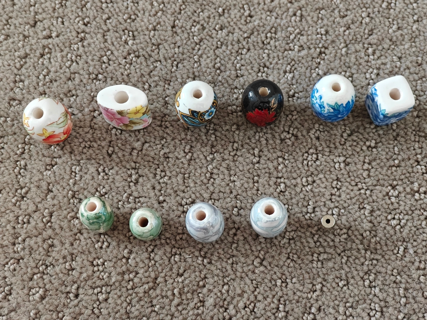 I am selling Various Glass Beads in new condition. Purchased but never used, just placed in storage. Recommended for jewelry/craft-making use. Only what is seen in the photo is available. Quantity: 10 Glass Beads & 1 Metal Weight Glass Bead Dimensions: * Heights: Varies between 15mm to 25mm * Hole Size: Varies between 3mm to 5mm Comes from a pet and smoke-free environment. Pickup in Mount Pleasant (NW Calgary)