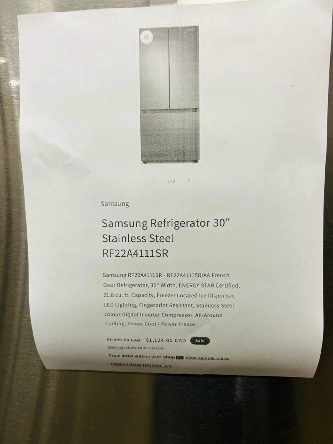 Stainless steel Samsung brand new fridge with warranty, we are located in Scarborough and we do delivery. Call me for more information 4039297194