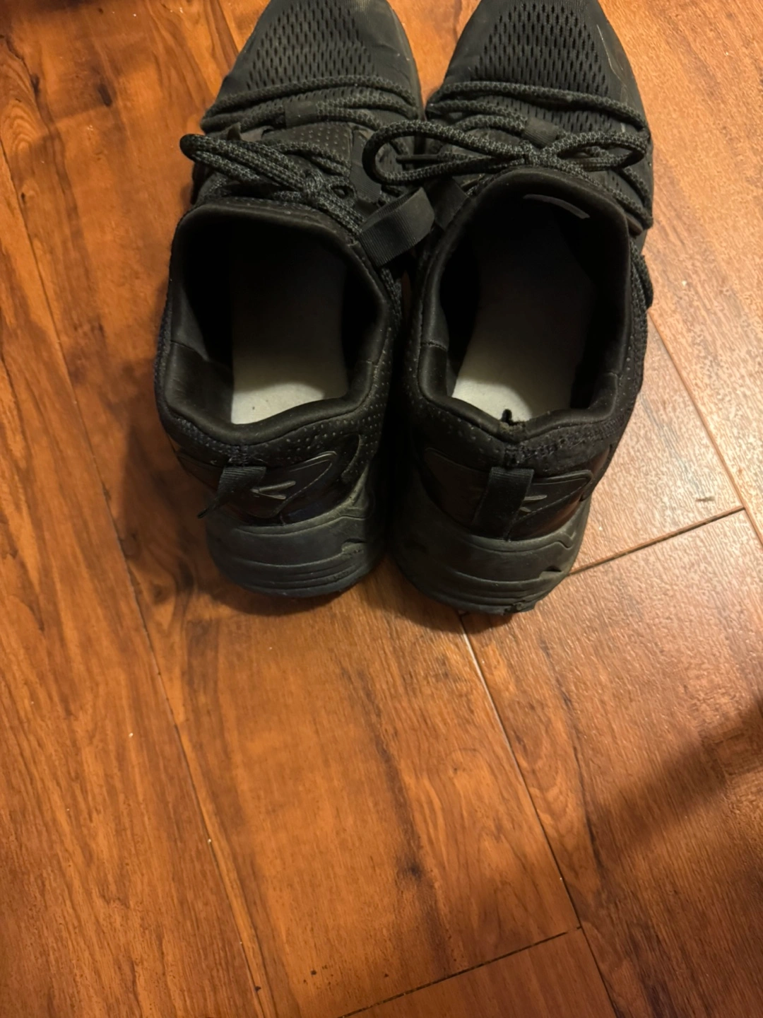 Selling a pair of black running shoes. They're in good condition and ready for your next run! Size USA:11