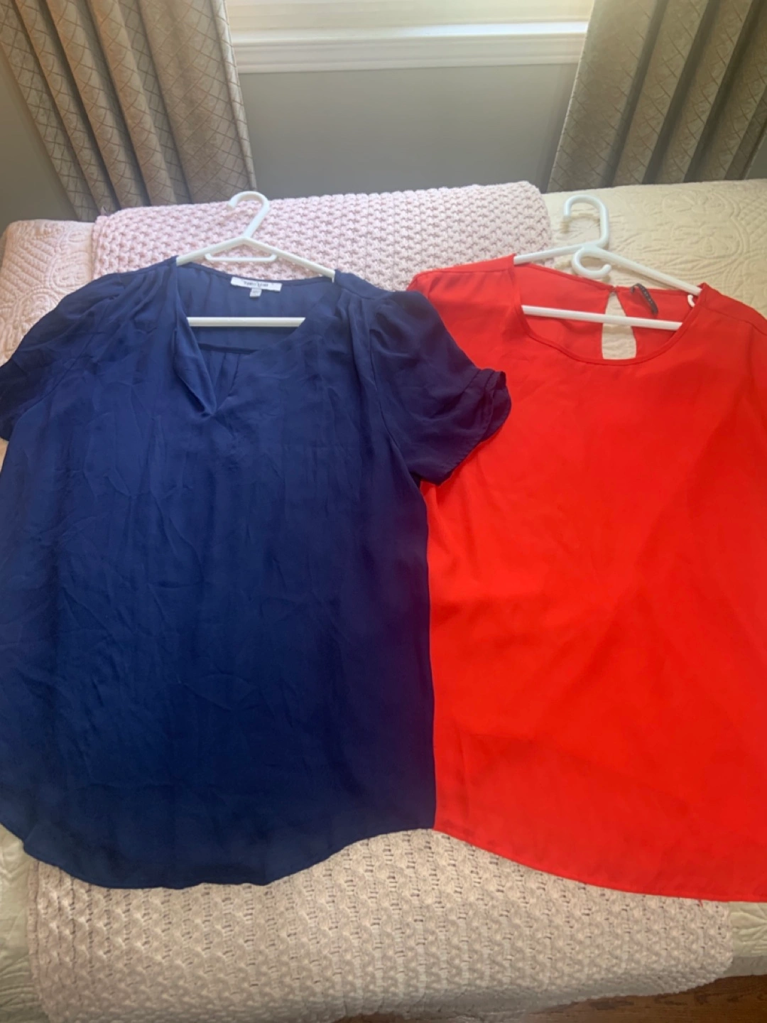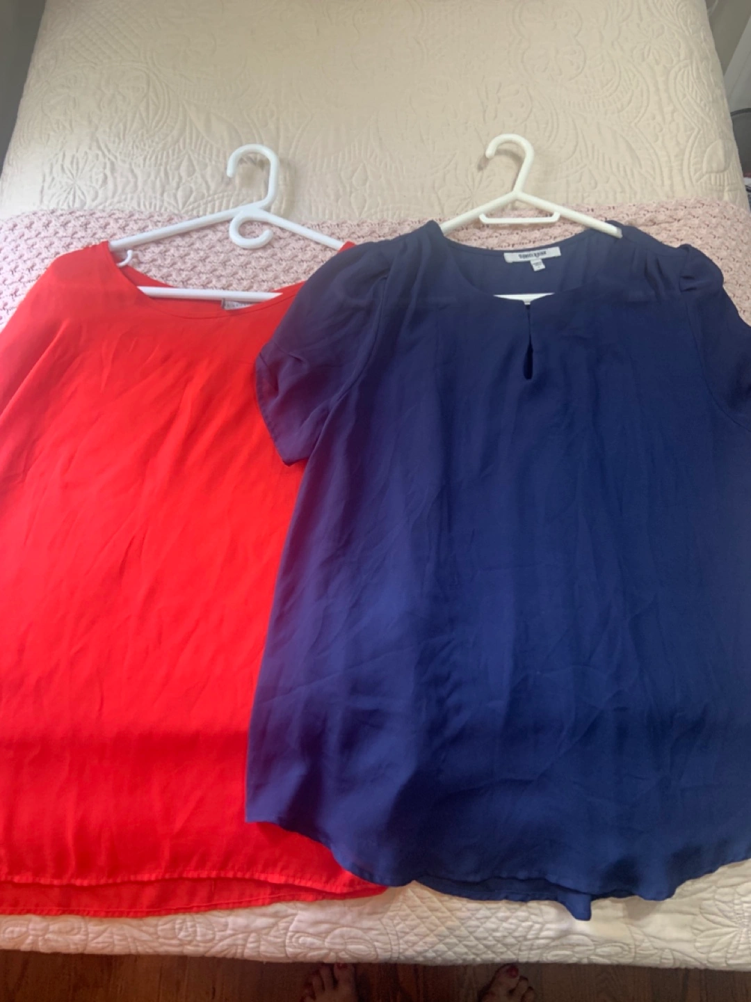 • GENTLY USED • BEAUTIFULLY CRAFTED•STYLED • WOMEN’S BLOUSES • RED * SUZY SHEER * SIZE LARGE • BLUE * DANIEL RAINN * SIZE LARGE • $5 each or 2/$7 • MAIN INTERSECTIONS ARE HURONTARIO•STEELES JUST BEFORE DOWNTOWN BRAMPTON