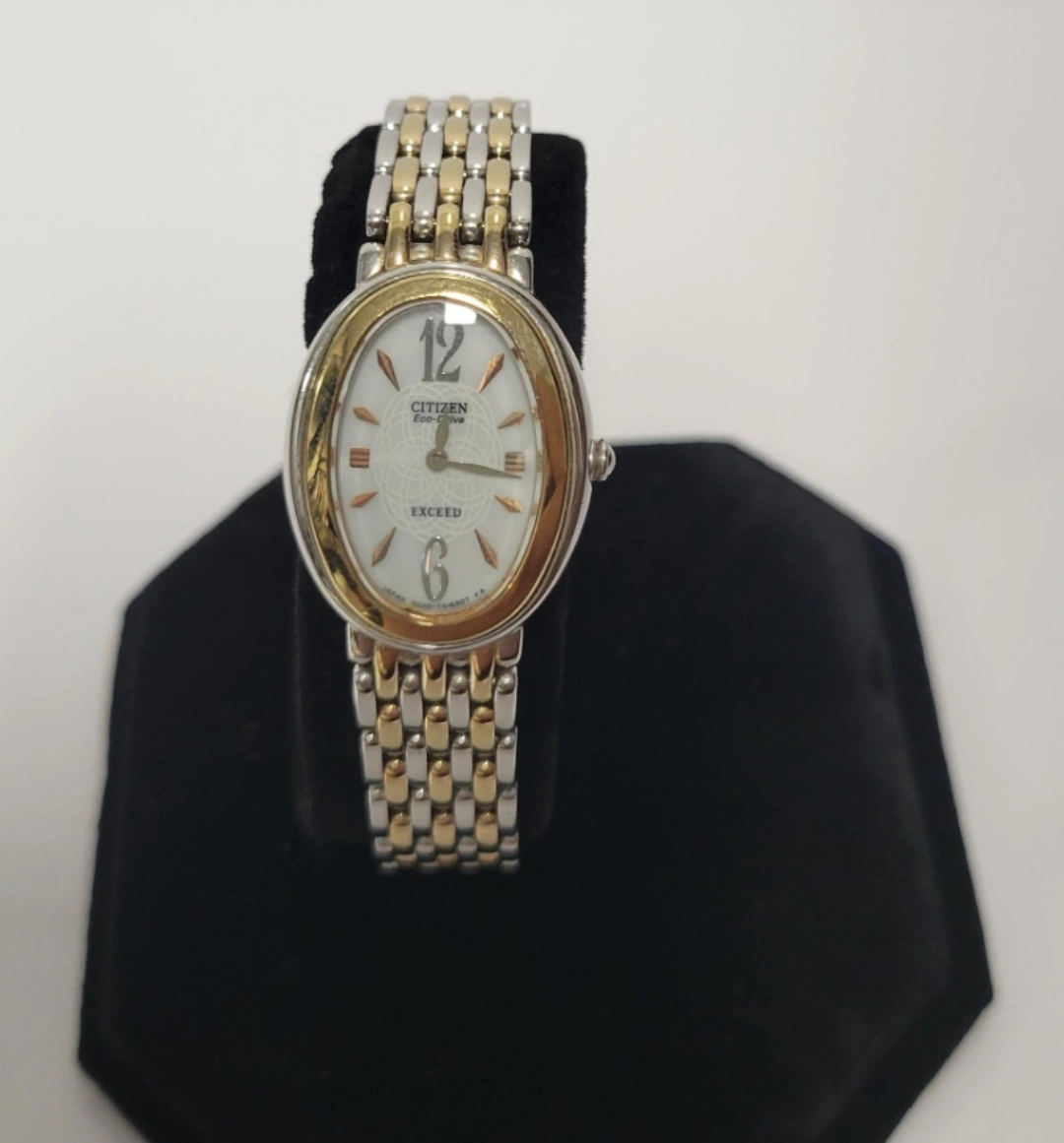 Selling a Citizen Exceed ladies watch in a lovely two-tone finish! It's in great condition and comes with its original box. A classic timepiece to add to your collection! face size: Approx 2.5 cm band: 16cm please review pictures carefully for the flaws.