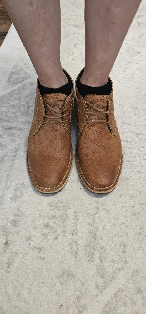 Selling a pair of Steve Madden ankle boots in a tan leather. They're in good used condition. Perfect for dressing up or down!
