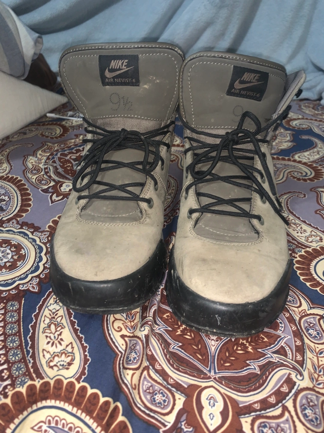 Selling a pair of Nike Air Nevist 6 hiking boots. They are a US size 9.5. They show signs of wear