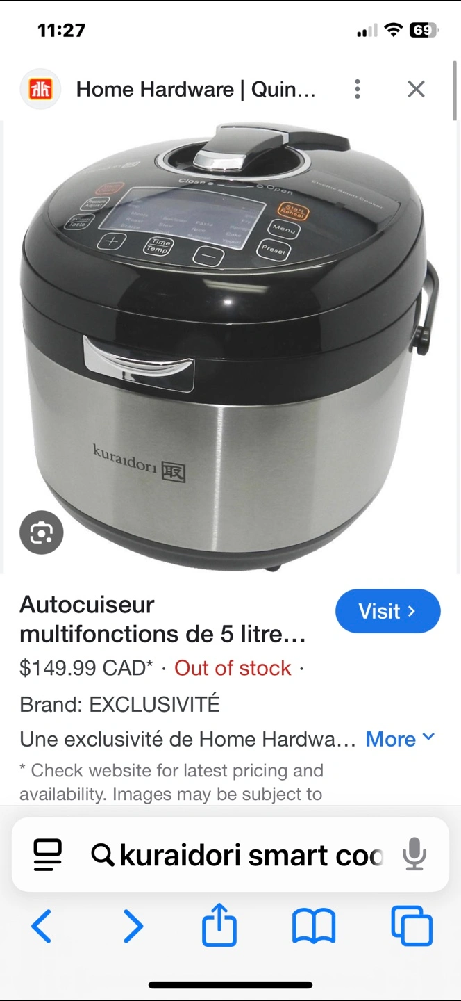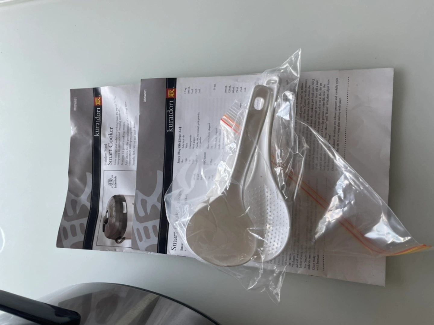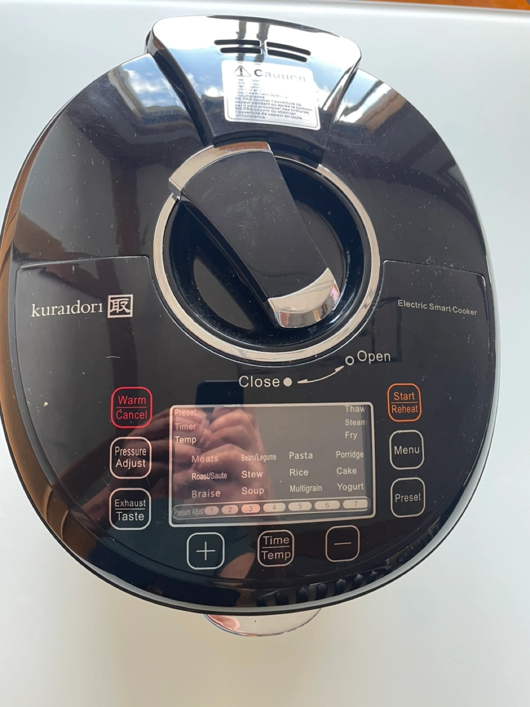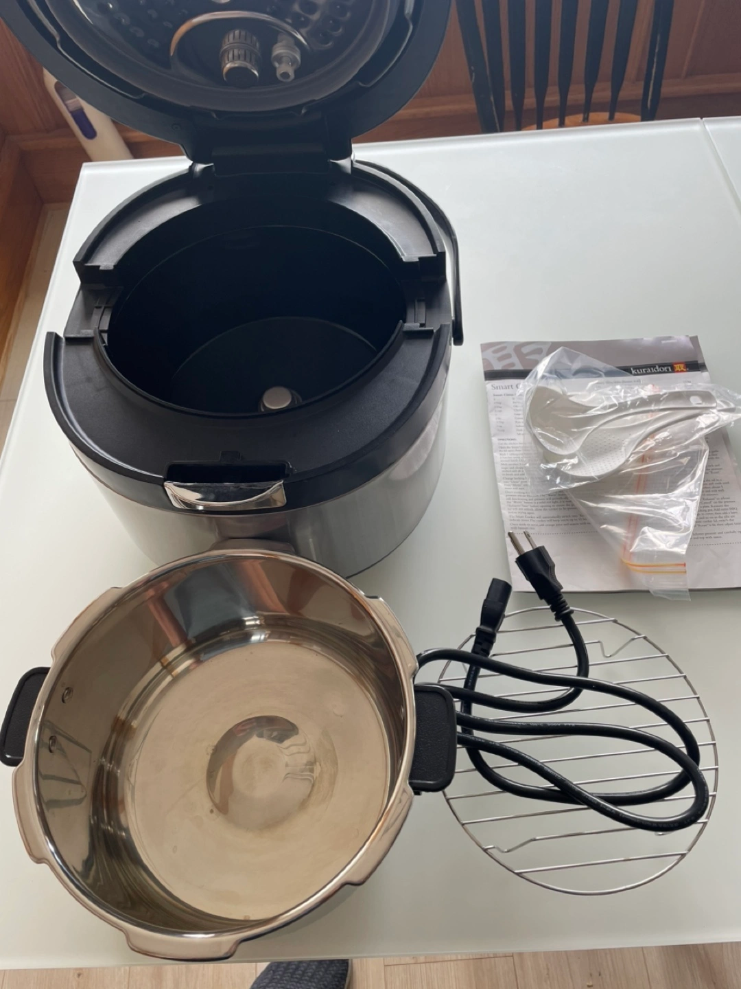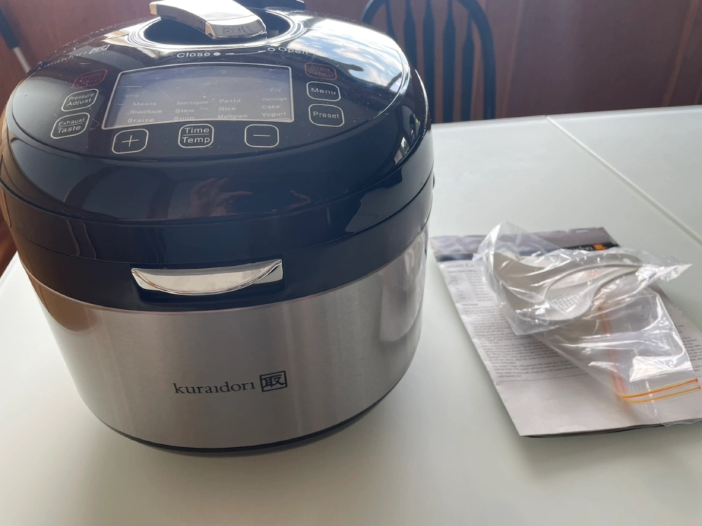 Like-new KURAIDORI 5L Electric Smart Cooker. Features multiple cooking functions. Includes power cord, steaming rack, and measuring cup. Stainless steel inner pot. Excellent condition.