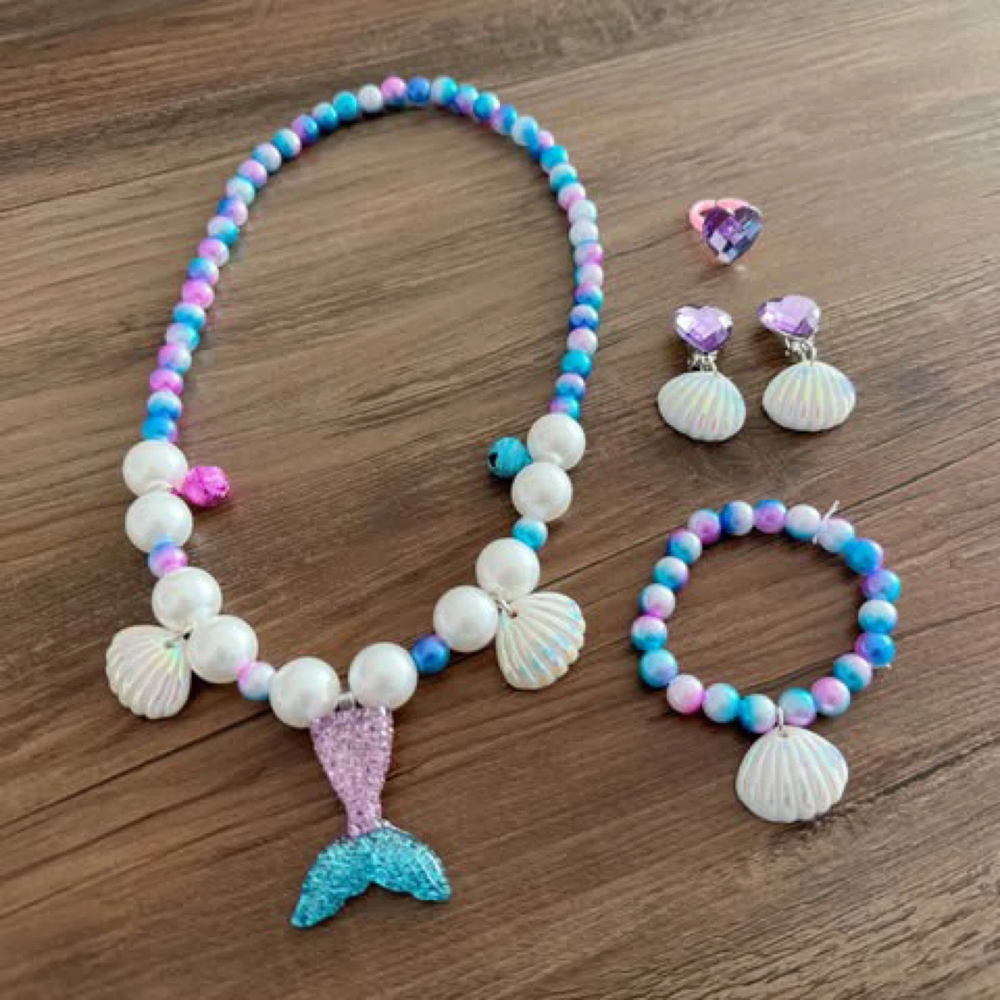 5PK Mermaid Necklace, Bracelet & Earring Set