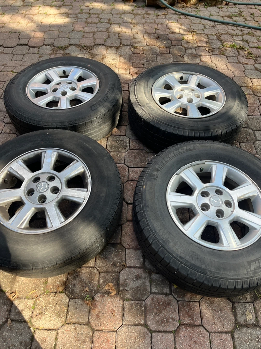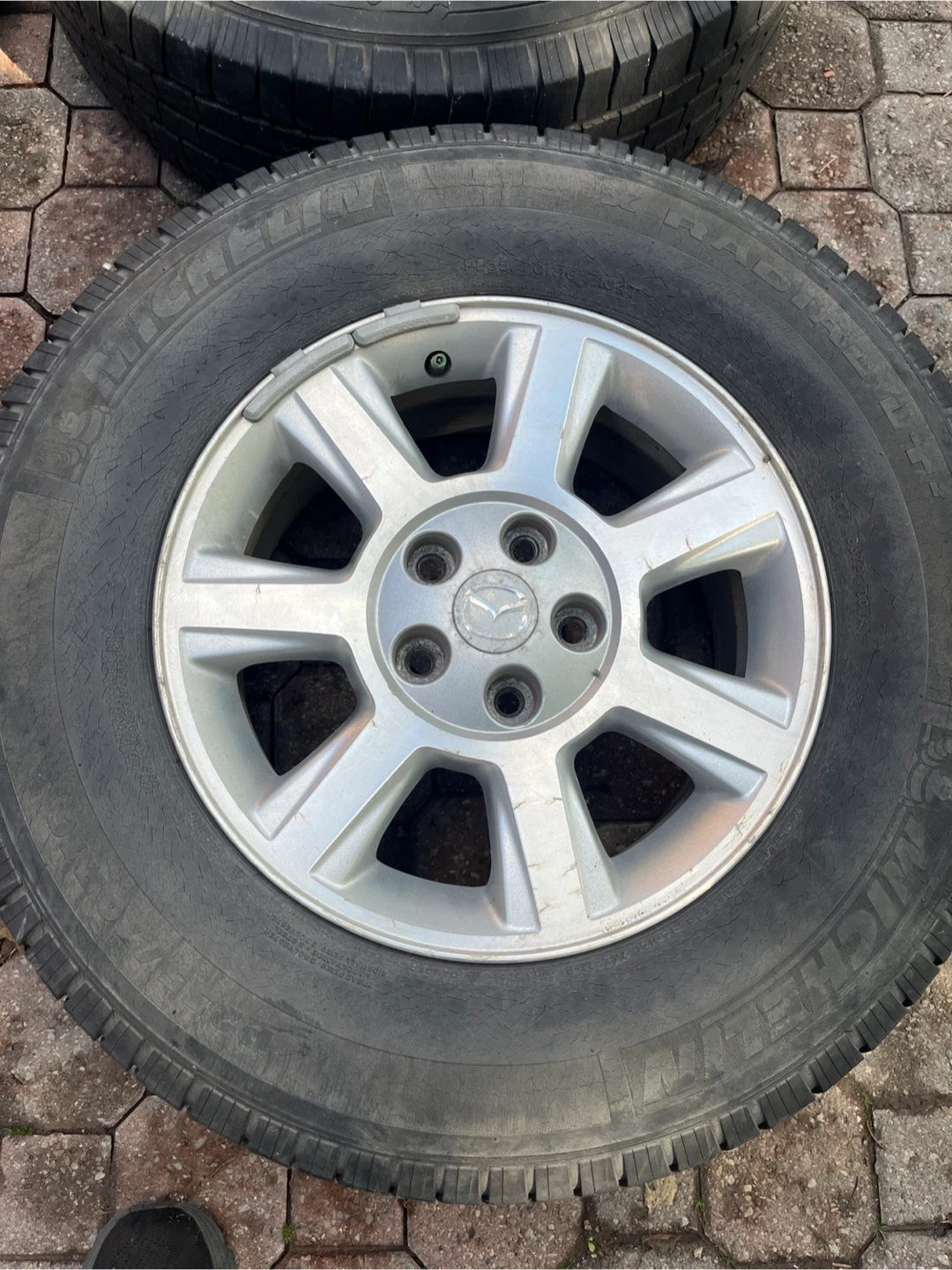 Price is for all 4. Aluminum rims lightweight with 5x114.3 bolt pattern 16 inch size. from mazda. Tires are no good and need replacing.