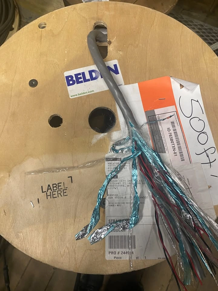 6 pair #18 sh belden 9389 over 300 ft NEW Over 300ft left on the roll Well below market value Belden 9389 - 18 AWG pairs stranded (19x30) tinned copper conductors, twisted pairs, PVC insulation, individually shielded (100% coverage), PVC jacket. Sunlight Resistant and rated for Direct Burial PVC - Polyvinyl Chloride Intertie interconnection cable wire