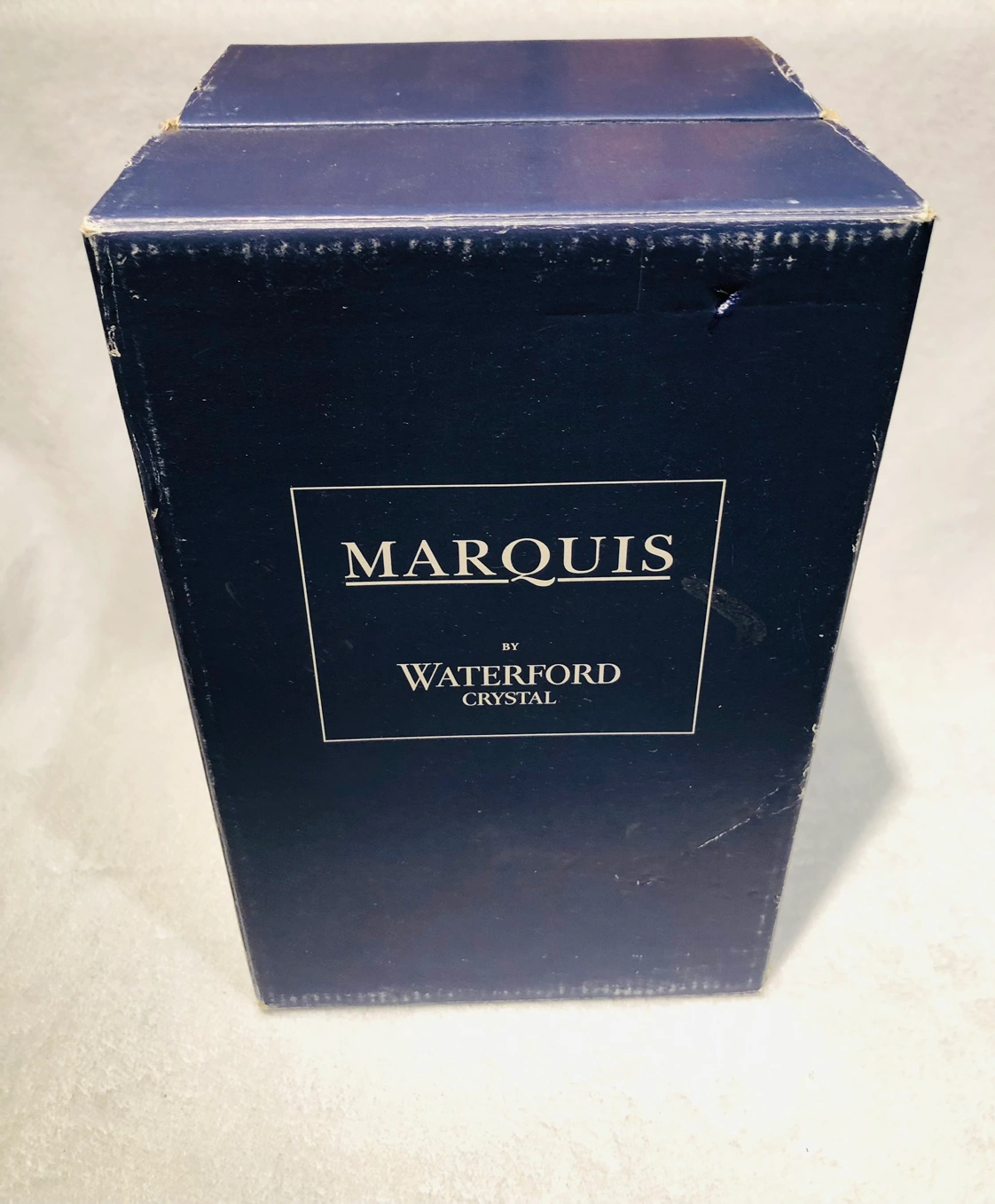 New in Box. Waterford Crystal Hanover Gold Champagne Flutes by Marquis. Classic charm is displayed in the simple elegance of the Hanover Gold Champagne Flutes. Graceful and refined vertical cuts intersect a delicate soft flat cut border treatment accented with a gold rim. A hexagonal paneled stem rests atop a brilliantly clear foot and feature a gold rim and vertical cut. Marquis crystal is manufactured by the Waterford Crystal Company in Waterford, Ireland. The Hanover Gold pattern is a pattern of exquisite beauty with a gorgeous design. Four new in box, two new out of box. (Original price $575.00)
