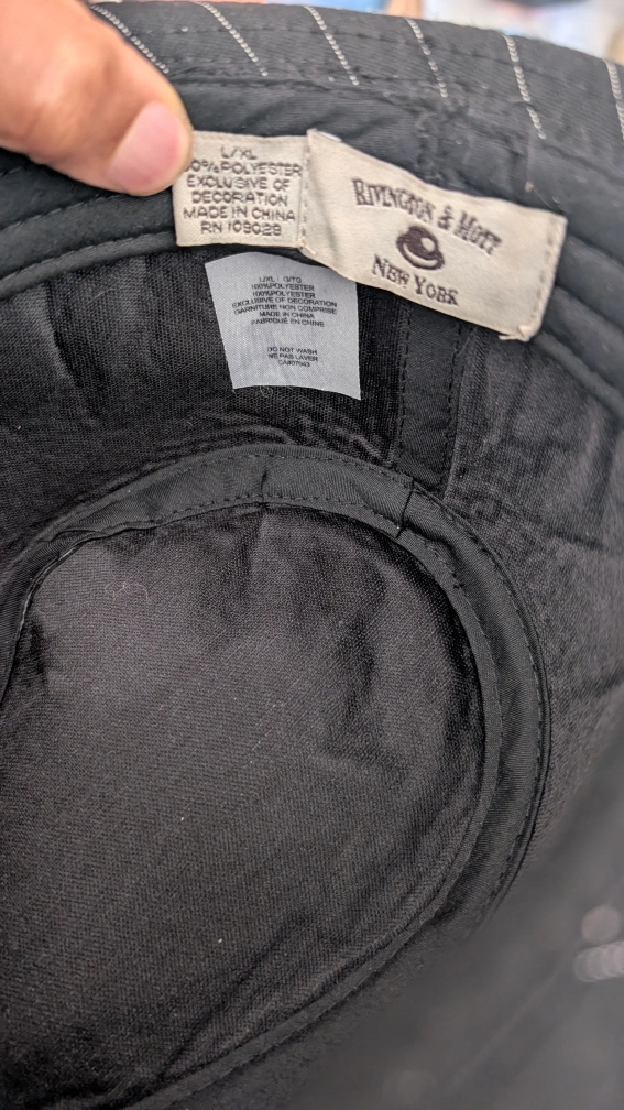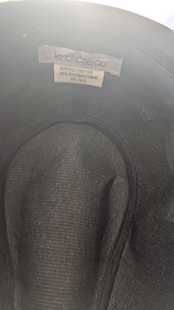 Two stylish hats for sale! One is from Le Chateau and is made of 65% polyester and 35% rayon. It's a size M/L. The other hat is from Rivington & Mott, size L/XL, and made of 100% polyester.