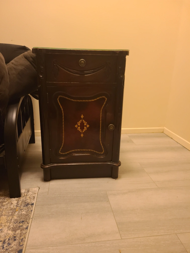 Selling 2 vintage wooden nightstands with glass tops. It has a drawer and a cabinet with a door. It shows some signs of wear and tear, as seen in the photos, but it's still a charming piece of furniture asking $300.00 or best offer you can contact me at (416)580-2538 or email me at bereti68@gmail.com