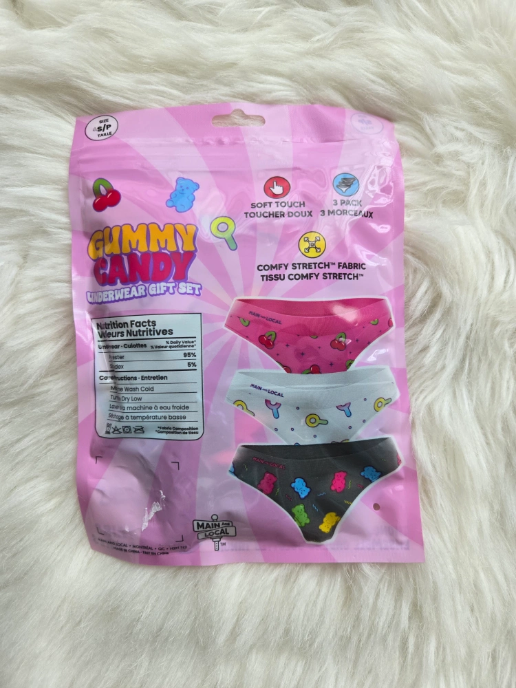Cute Gummy Candy Underwear Gift Set! - Includes 3 pairs of thongs - Size S/P - Soft touch, comfy stretch fabric -Brand new never in packaging
