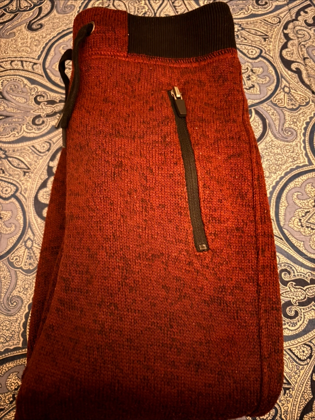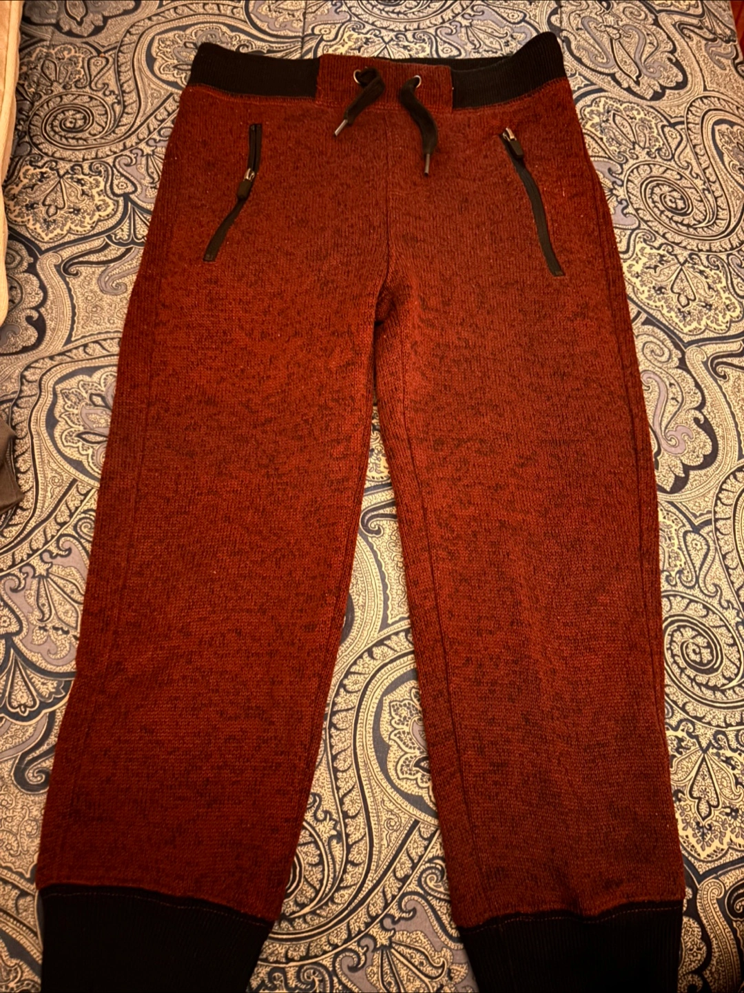 Cozy Old Navy knit pants in size XS/TP (5)! These pants feature a unique red knit texture and stylish black accents. Perfect for casual wear or lounging around the house, they offer both comfort and a touch of style