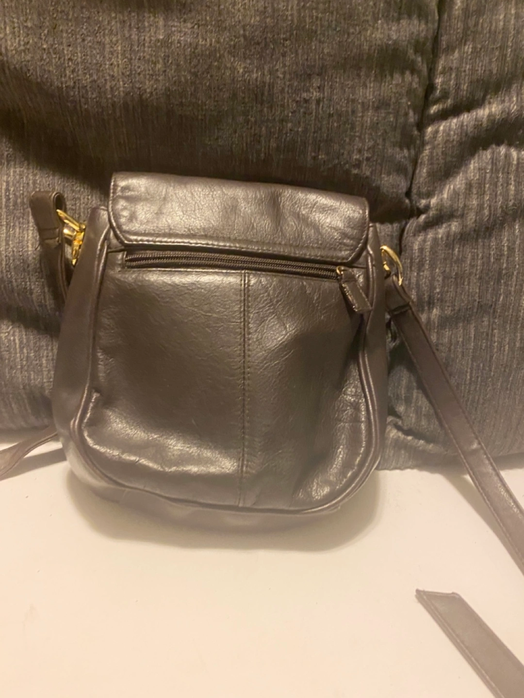Selling a stylish brown leather crossbody bag! It's in great condition and perfect for everyday use. The bag features a classic design with a flap closure and a convenient shoulder strap.
