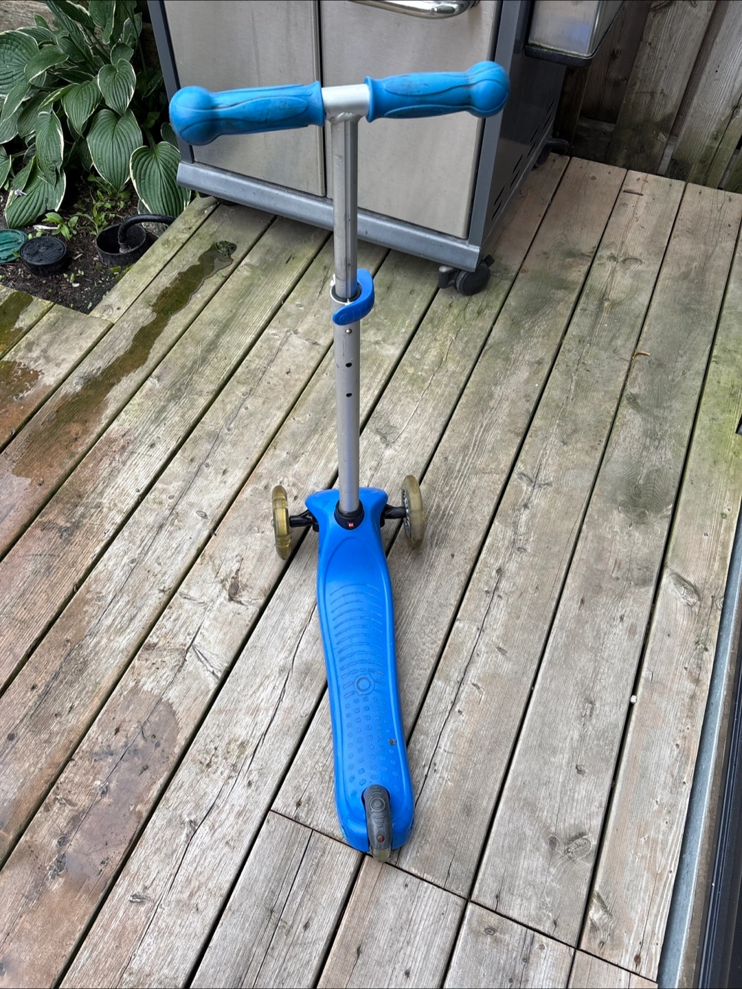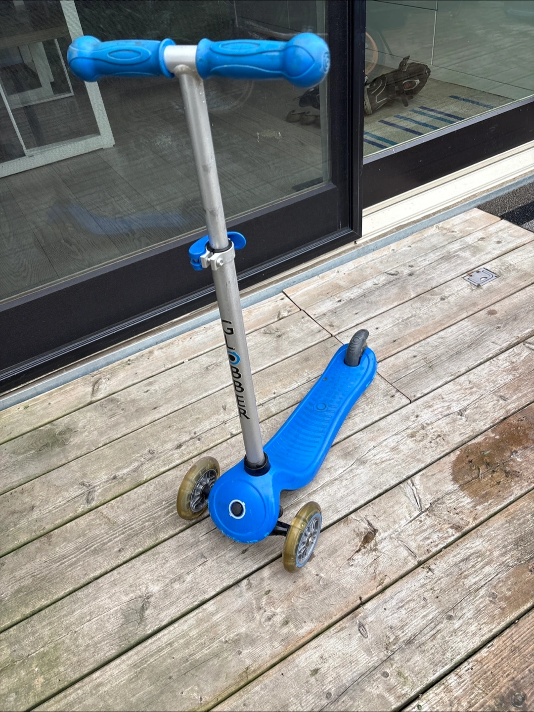 Selling a blue Globber GT scooter! It's perfect for kids who are just learning to scoot around. This scooter is in good condition and ready for a new home