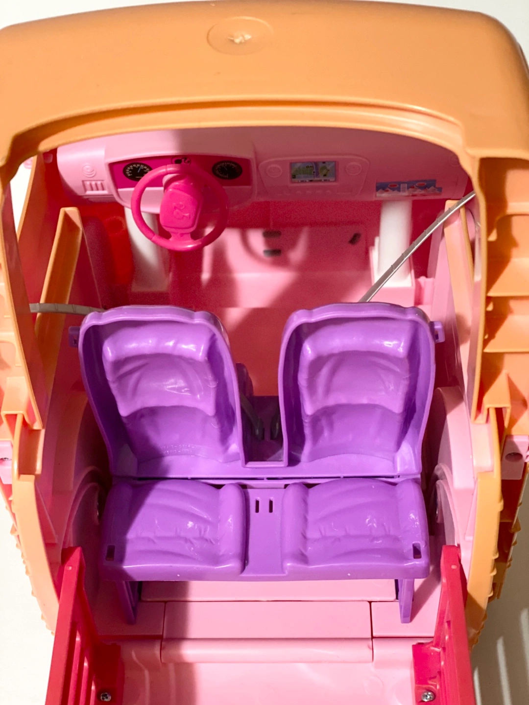 Selling a Barbie camper for parts only. It features purple seats and black wheels with the Barbie logo. Perfect for your Barbie dolls to cruise around in style. (Pickup in Chinguacousy and Remembrance)