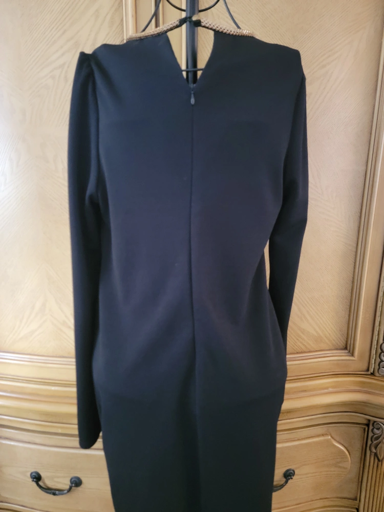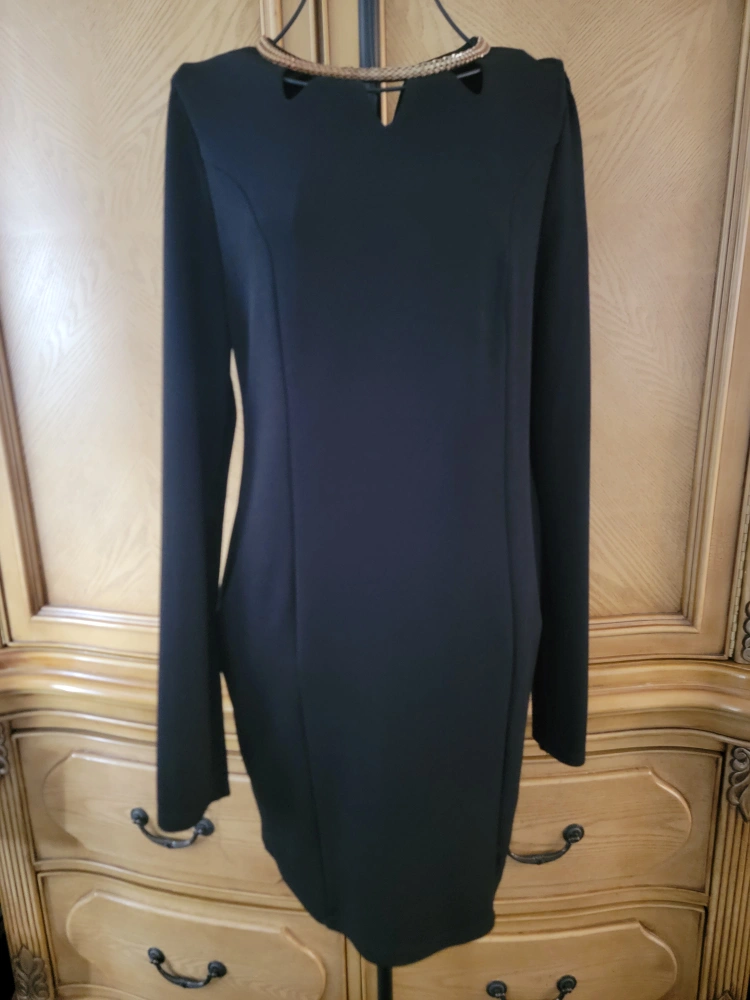 Here is a black long sleeve dress. It's in great condition and ready for a new home! The dress has a unique neckline detail.