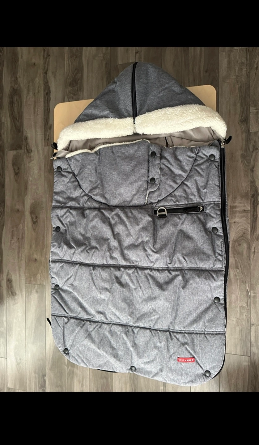 Keep your little one cozy with this Skip Hop Stroll & Go three-season footmuff! It's designed to keep your baby warm and snug during stroller rides. The footmuff is in great condition and comes with its original packaging