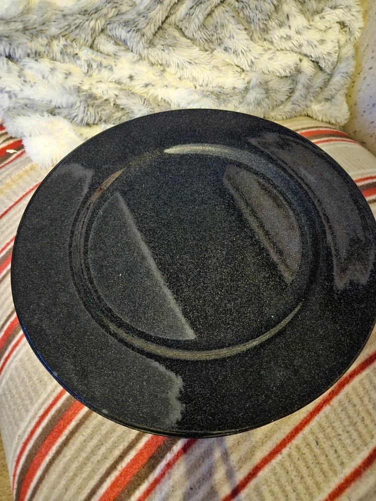 Selling a black plastic charger plates - sparkly plastic. Not previously used. 11 charger plates